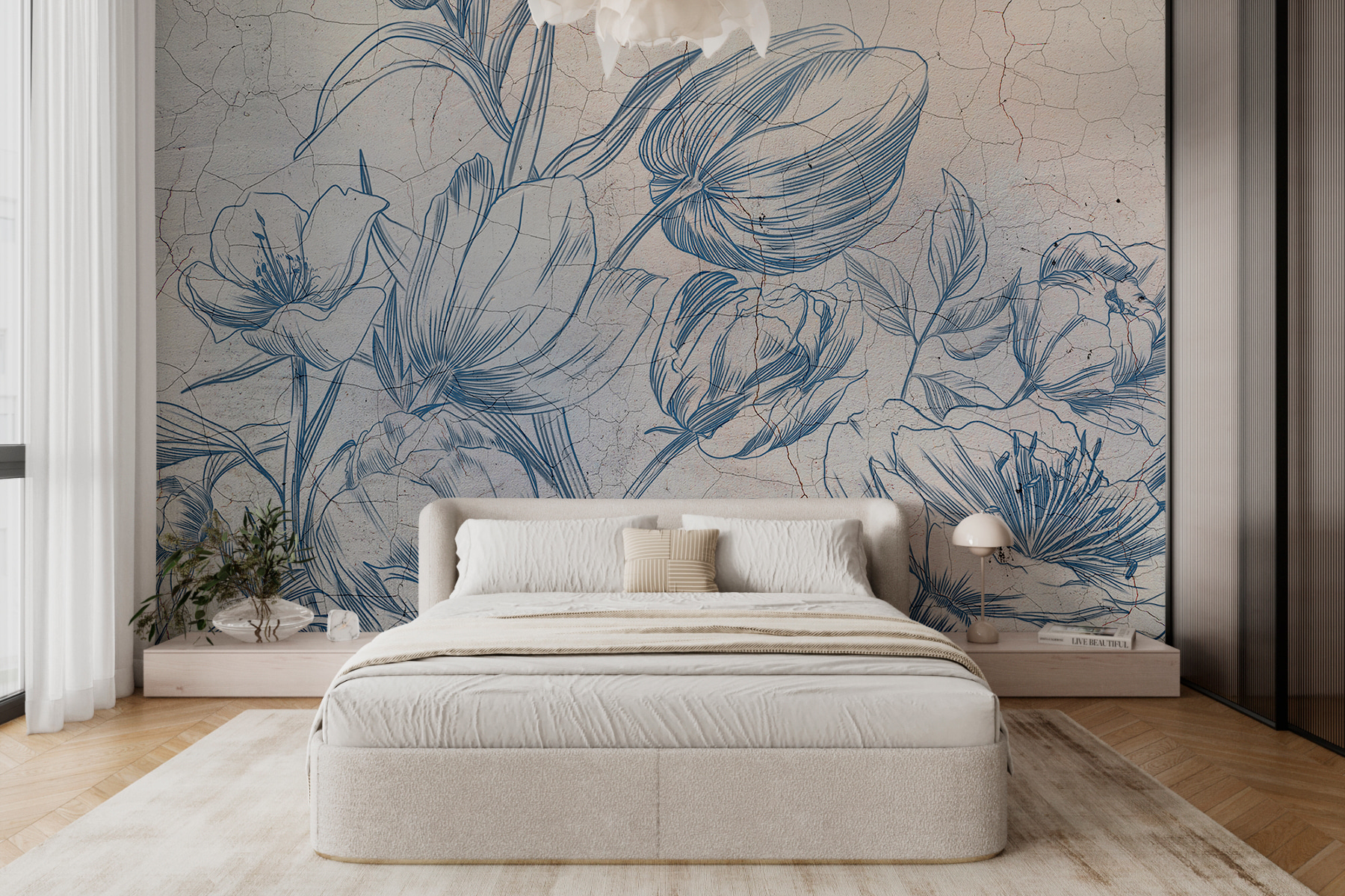 Transformați-vă spațiul cu această pictură murală încântătoare cu un desen floral delicat. Imaginați-vă că pășiți într-o cameră în care natura flirtează cu arta, fiecare petală invitând șoapte de liniște. Liniile albastre moi pe un fundal cald arată aproape ca o briză blândă care prinde florile dintr-o grădină. Este perfect pentru a face un colțișor confortabil să pară și mai primitor sau pentru a conferi unei sufragerii acel factor wow în timpul întâlnirilor. Oamenii îi vor admira farmecul – poate chiar se vor gândi la o mică filosofie a florilor! Indiferent unde este amplasată, această pictură murală este ca și cum ai avea o operă de artă care insuflă viață pereților tăi. Un amestec perfect de eleganță și căldură care menține atmosfera relaxată și prietenoasă.