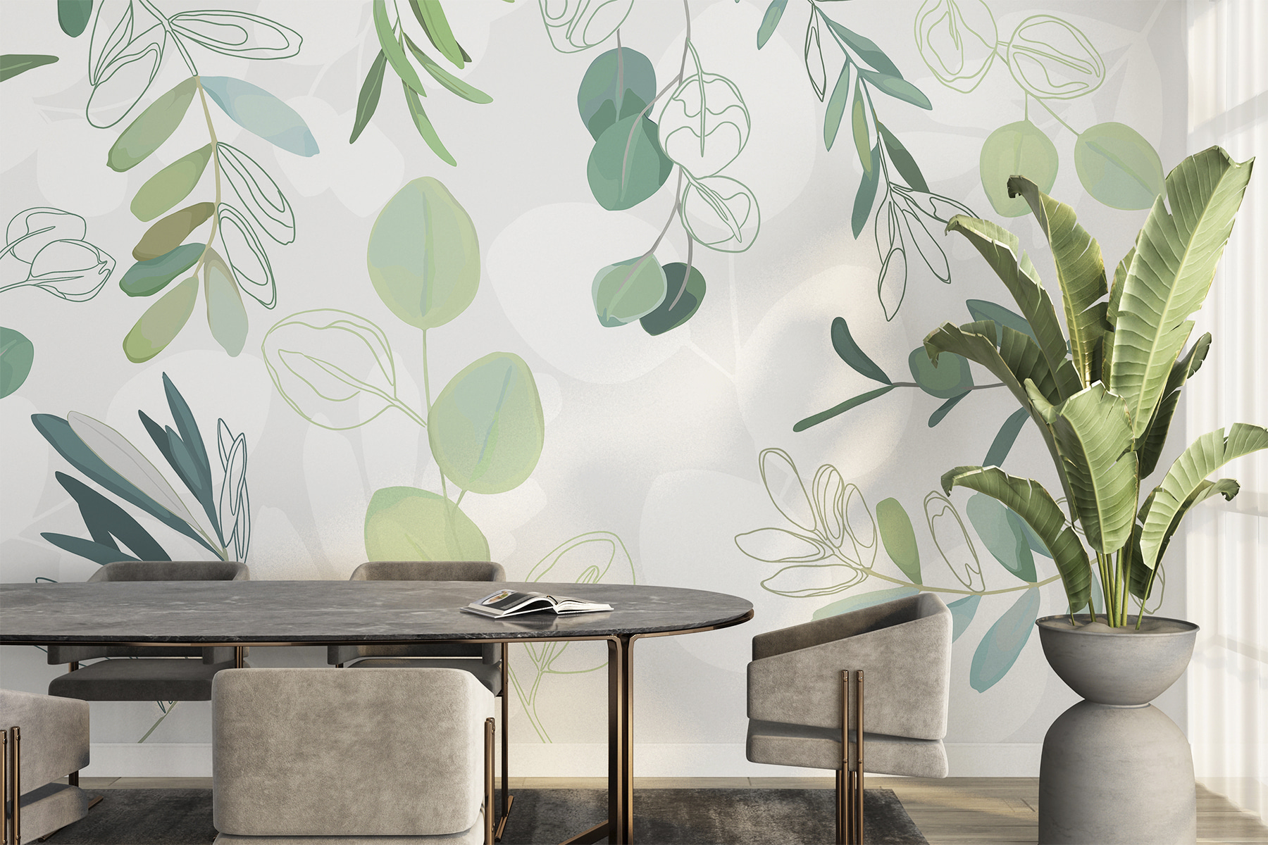 Transformați-vă spațiul într-o escapadă senină cu această pictură murală fermecătoare cu frunze verzi pe un fundal alb liniștitor. Imaginați-vă că intrați într-o cameră care se simte ca un refugiu aerisit în pădure. Este perfect pentru oricine dorește să scape de agitația cotidiană și să se relaxeze într-un colț șic al naturii – fără insecte, desigur. Verdele blând oferă o notă proaspătă de culoare, în timp ce flerul artistic aduce un vibe șic. Fie că este vorba de un colț de lectură confortabil sau de o zonă de luat masa plină de viață, această pictură murală creează o atmosferă primitoare de care este ușor să vă îndrăgostiți. În plus, oaspeții vă vor întreba cu siguranță unde ați găsit o piesă atât de încântătoare. Nu este doar decor; este un stimulent pentru starea de spirit.