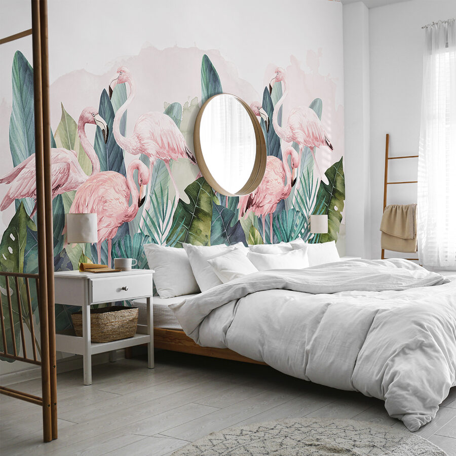 Imaginați-vă că vă treziți cu un paradis vibrant de flamingo chiar pe peretele dumneavoastră! Această pictură murală, denumită în mod adecvat “Grup de flamingo roz și frunze”, îmbină nuanțele blânde și înroșite ale flamingo cu verdeața luxuriantă – perfectă pentru a adăuga un strop de farmec tropical oricărui spațiu. Fie că vrei să transformi un colț de cameră fad într-un sanctuar plin de viață, fie că vrei să dai un aer exotic camerei tale de zi, această pictură murală te va ajuta. Rozul iese în evidență, nu-i așa? Este ca și cum aceste flamingo ar fi gata să se afișeze în orice moment. Imaginează-ți dimineața: cafeaua în mână, bucurându-te de atmosfera senină și veselă pe care o aduc aceste flamingo. Ele șoptesc “numai vibrații bune” și lasă o impresie însorită și reconfortantă, înălțând instantaneu orice cameră din casa ta. Un stimulent total al dispoziției, nu-i așa?