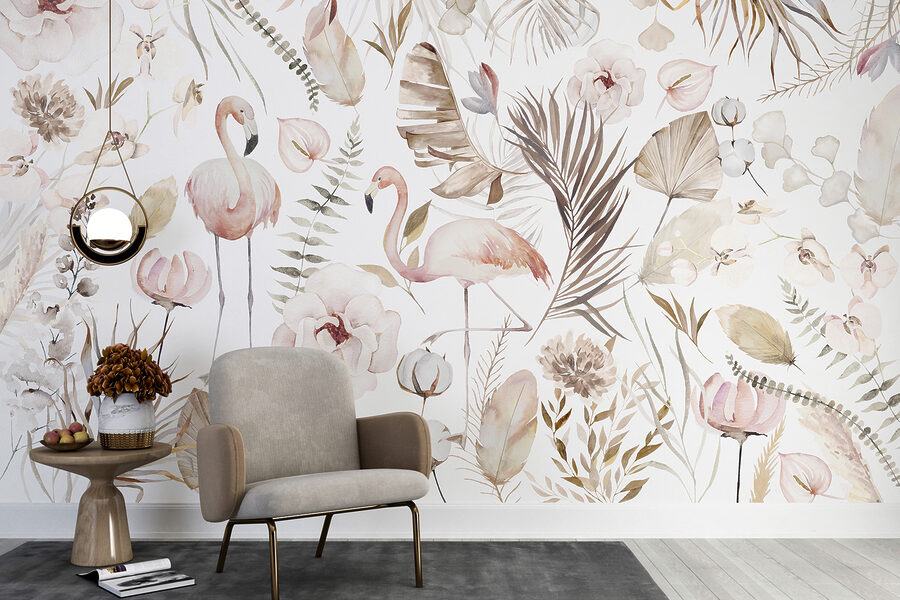 Imaginați-vă că oferiți spațiului dvs. o doză de paradis, cu “Flamingo Dance Amidst Botanical Dreams”. Această pictură murală vă transportă într-o junglă de vis, unde flamingo elegante întâlnesc o grădină luxuriantă cu floră exotică. Perfect pentru cei care adoră o atingere a tropicelor – este ca o mini-vacanță pe peretele dvs. Culorile blânde și designul capricios adaugă un vibe senin, dar jucăuș. S-ar putea chiar să vă treziți visând cu ochii deschiși la după-amiezele leneșe însorite de pe plajă. Serios vorbind, este o piesă care fură scena. Ideal pentru sufragerii, dormitoare sau orice colțișor care are nevoie de un strop de viață și culoare. Crede-mă, pereții tăi îți vor mulțumi!