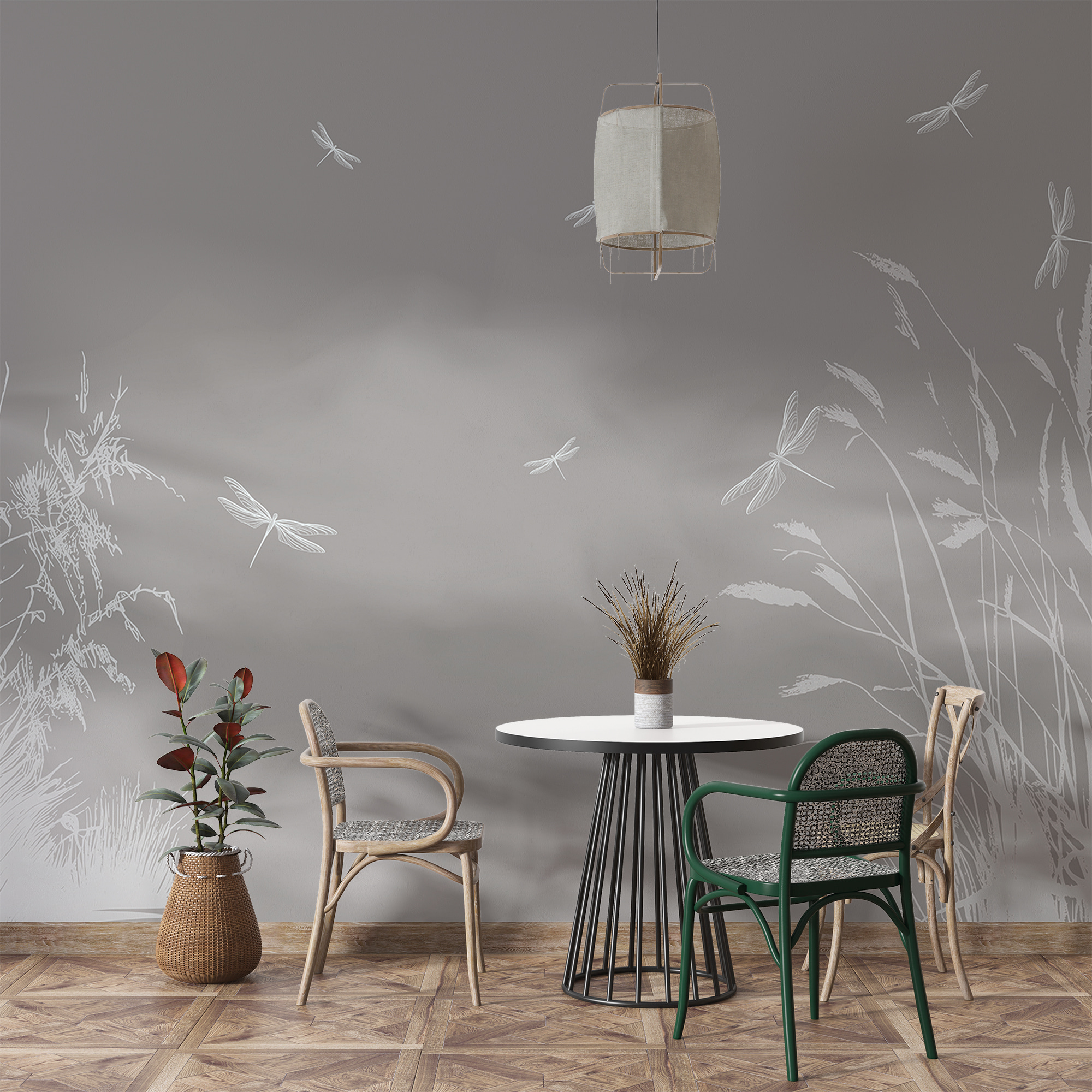 Imaginați-vă acest lucru: intrați în spațiul dvs. de locuit, iar pe perete se află această pictură murală hipnotizantă cu libelule, ca ceva desprins dintr-un vis. Pictura murală “Libelula albă cu aripi” nu înseamnă doar adăugarea de artă, ci aducerea unei note de eleganță a naturii în casa dvs. Contururile albe delicate, aproape șoptite, flutură pe un fundal gri blând, evocând sentimente de pace și liniște, ca într-o după-amiază liniștită lângă un iaz. Libelulele par aproape gata să își ia zborul de pe perete! Ideal pentru iubitorii de natură sau pentru oricine caută să adauge un vibe senin camerei lor. Este ca și cum ai avea o mini evadare pe o pajiște liniștită fără să ieși din casă. Un starter de conversație perfect și o atracție liniștită pentru ochi – toate într-un mural dulce.