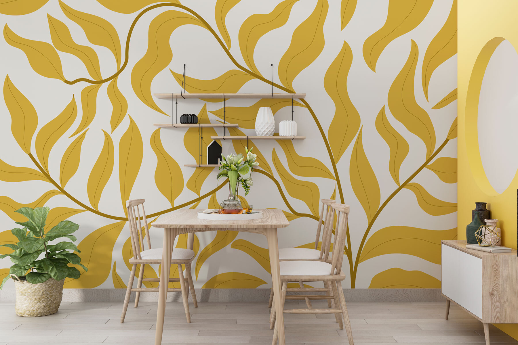 Imaginați-vă că intrați într-o cameră și bum – sunteți întâmpinați de o explozie de frunze însorite care dansează pe un perete alb imaculat. Această pictură murală, cu stilul său contemporan, combină o notă proaspătă, de designer, cu frumusețea organică a frunzelor. Este ca și cum ați invita o piesă de artă modernă și natura să vă găzduiască împreună spațiul de locuit. Frunzele de un galben cald au acel vibe perfect, care nu strigă după atenție, dar sporește cu încredere aura camerei. Imaginați-vă-o în biroul dvs., o încălzire instantanee a unui colț de lectură, sau chiar în baie pentru un farmec de spa. Șoptește chic fără a încerca prea mult.
