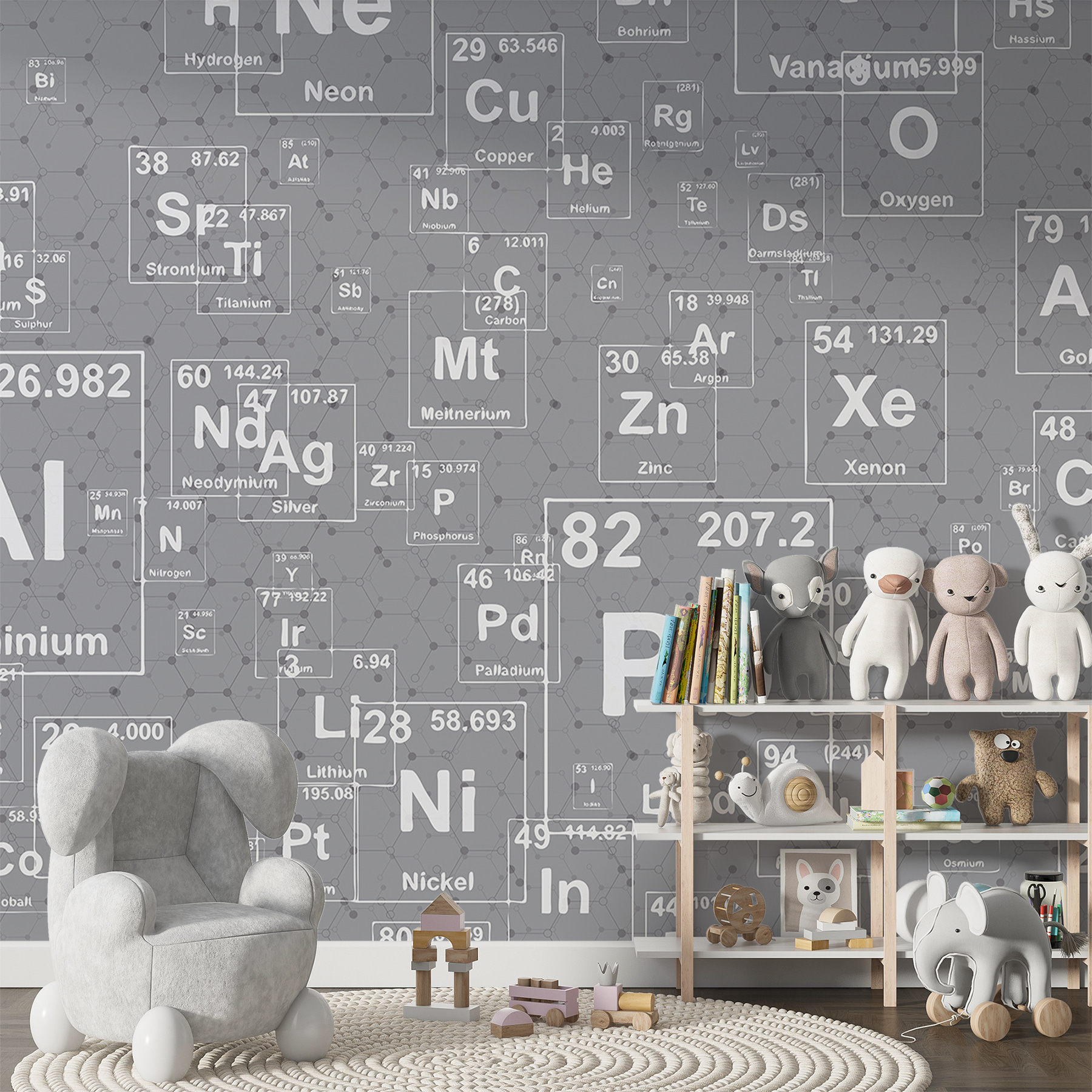 Ai simțit vreodată că pereții tăi au nevoie de un pic de fler inteligent? Uitați-vă la această pictură murală “Literă albă pe fond gri”! Este ca și cum ți-ai înveli camera în farmec științific, fără manualele prăfuite. Perfect pentru cei care iubesc tabelul periodic, dar vor să arate, știi tu, elegant. Tonurile de gri păstrate păstrează calmul, în timp ce literele albe răsar suficient pentru a vă atrage atenția. Imaginați-vă sorbindu-vă cafeaua de dimineață și simțindu-vă un pic mai deștept – serios, este ca și cum ați avea un mini laborator de științe în sufragerie, fără halate de laborator. Ideală pentru spațiile contemporane și pentru a adăuga acel factor “wow” suplimentar oricărei încăperi.