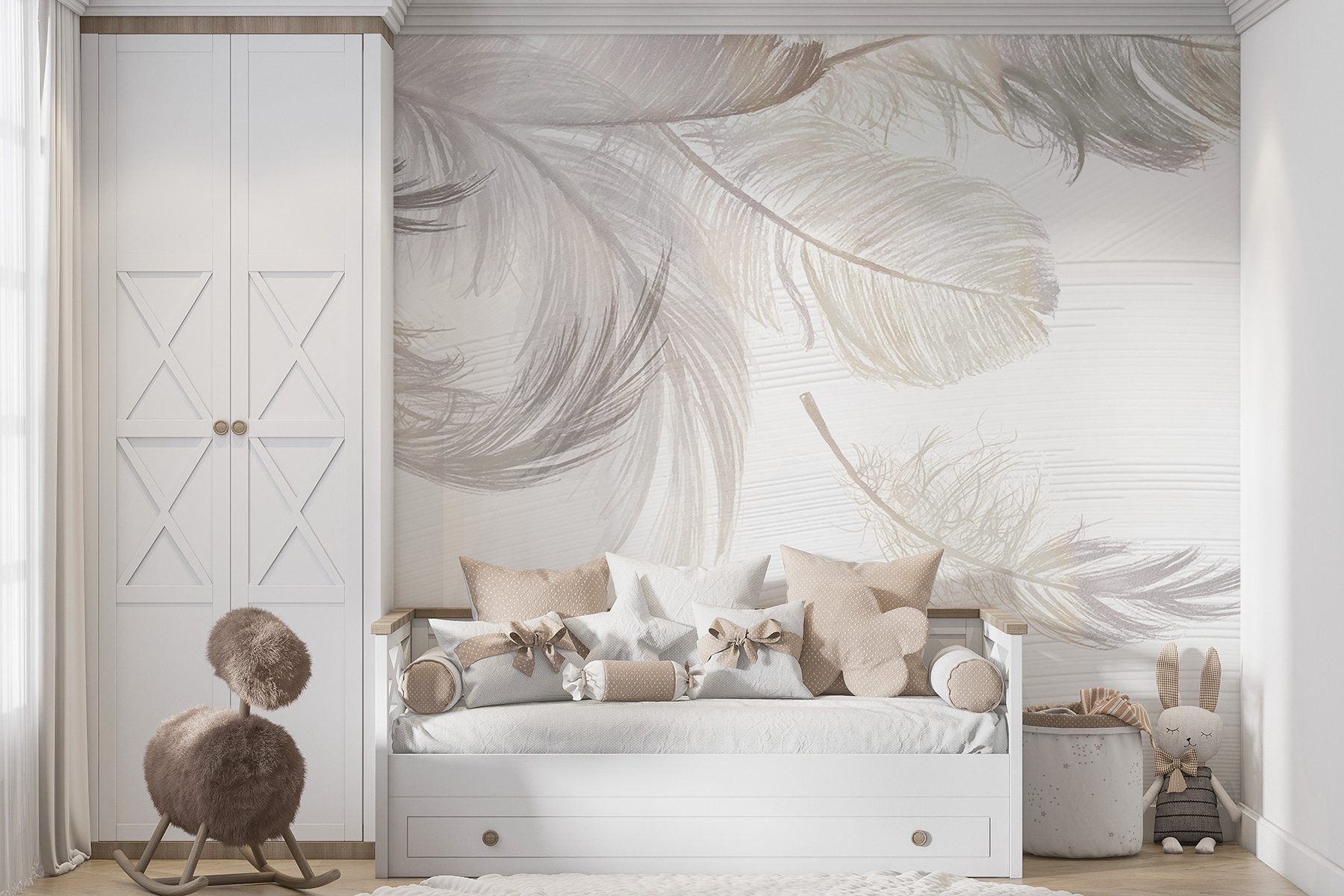Imaginați-vă că intrați într-o cameră în care vă îmbrățișează șoaptele blânde ale naturii. Această pictură murală, care prezintă pene albe moi pe o suprafață liniștită, invită la un sentiment de pace și eleganță. Este ca o gură de aer proaspăt, înălțând fără efort spațiul. Perfectă pentru un colț de lectură confortabil sau un dormitor liniștitor, aceasta dă un ton senin, potrivit pentru acele momente de răcoare. Imaginați-vă sorbind un ceai cu o carte bună, simțind cum greutatea lumii se ridică puțin. Este subtil, dar atrăgător – ca un secret moale care așteaptă să fie descoperit. O mică atingere care face o mare diferență!