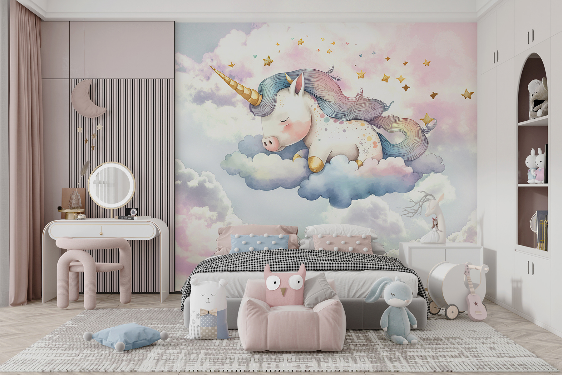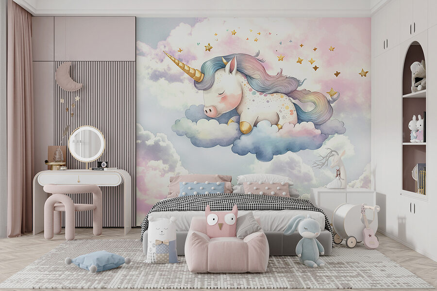 Uitați-vă la această pictură murală de vis “Unicorn dormind pe nori”! Serios, este ca și cum ai păși într-un vis magic și pufos de fiecare dată când intri în cameră. Imaginați-vă că locul dvs. confortabil preferat are acum un unicorn super drăguț, care doarme pe nori moi și pufoși – ce vibrație, nu-i așa? Perfect pentru a adăuga un strop de magie în camera unui copil sau chiar în propriul tău colțișor de lectură.