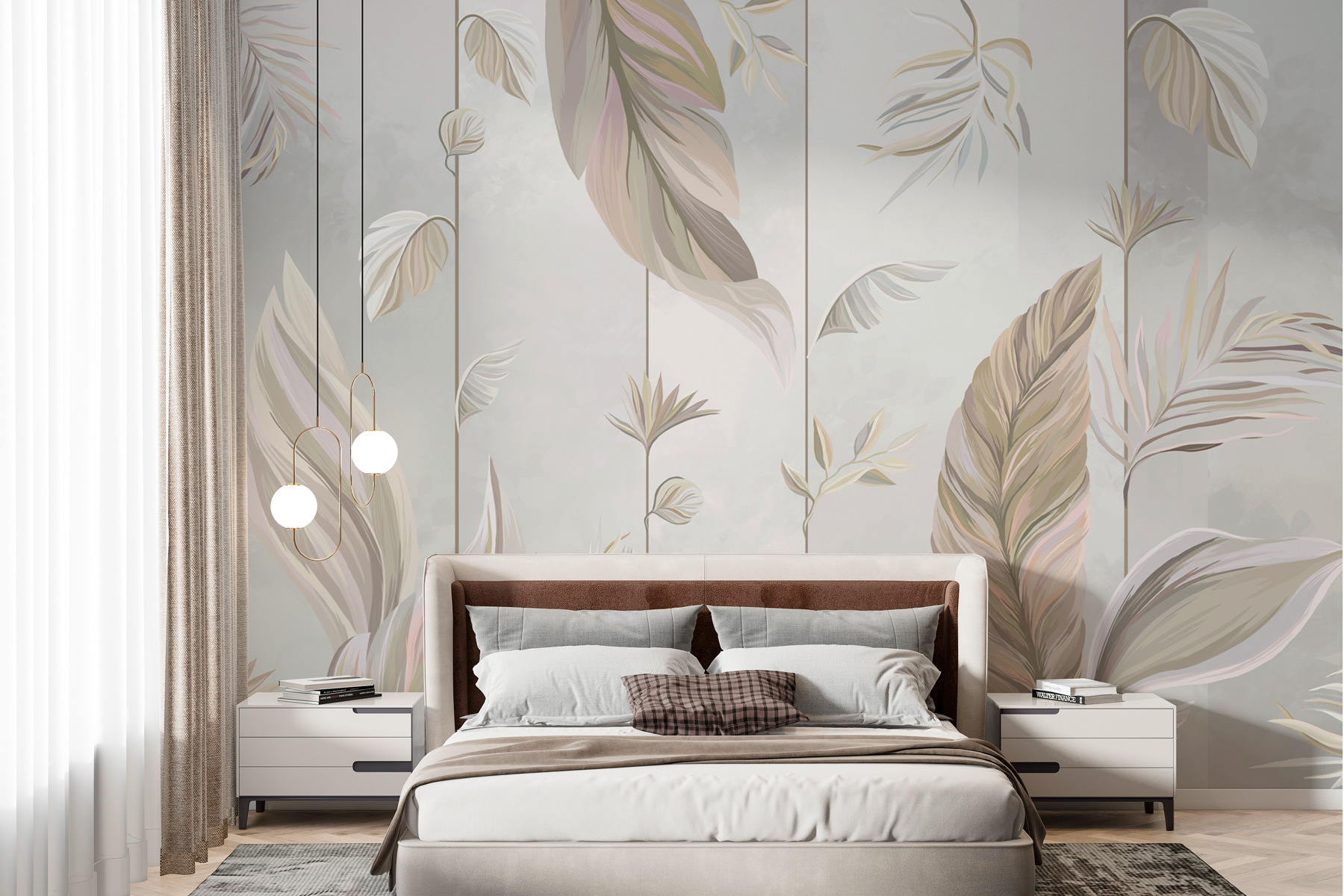 Transformați-vă spațiul cu pictura murală “Elegant Leaves”! Imaginați-vă că vă aflați într-o grădină senină de fiecare dată când intrați în cameră. Nuanțele pastelate moi sunt ca o șoaptă blândă de culoare, făcând ca totul să se simtă calm și împrospătat. Este genul de pictură murală care te face să vrei să te relaxezi cu o carte bună (și poate o ceașcă de ceai).