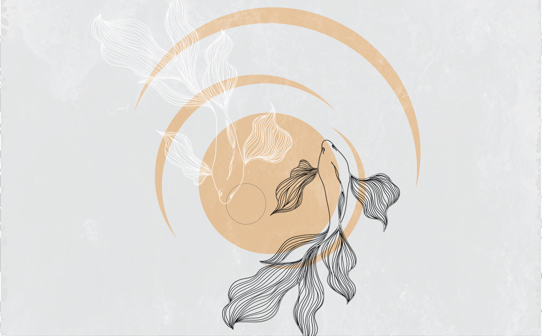 Ți-ai dorit vreodată să ai un acvariu, dar ai uitat mereu să hrănești peștii? Această pictură murală te-a acoperit. Este ca un tărâm de vis subacvatic, dar fără bule sau curățarea acvariului. Liniile moi și fluide ale desenului fac ca peștii să pară că înoată chiar pe perete. Perfect pentru o atmosferă liniștitoare în camera de zi sau în birou. Imaginează-ți vârtejurile blânde ale cozilor lor îndepărtându-ți grijile – terapia cu pești la cel mai bun nivel. Este artistică fără a încerca prea mult, confortabilă cu un strop de rafinament și, da, necesită foarte puțină întreținere! Cu siguranță e mai bine decât să ai de-a face cu un acvariu ud, nu? Păstrează-ți camera plină de viață fără obligații!