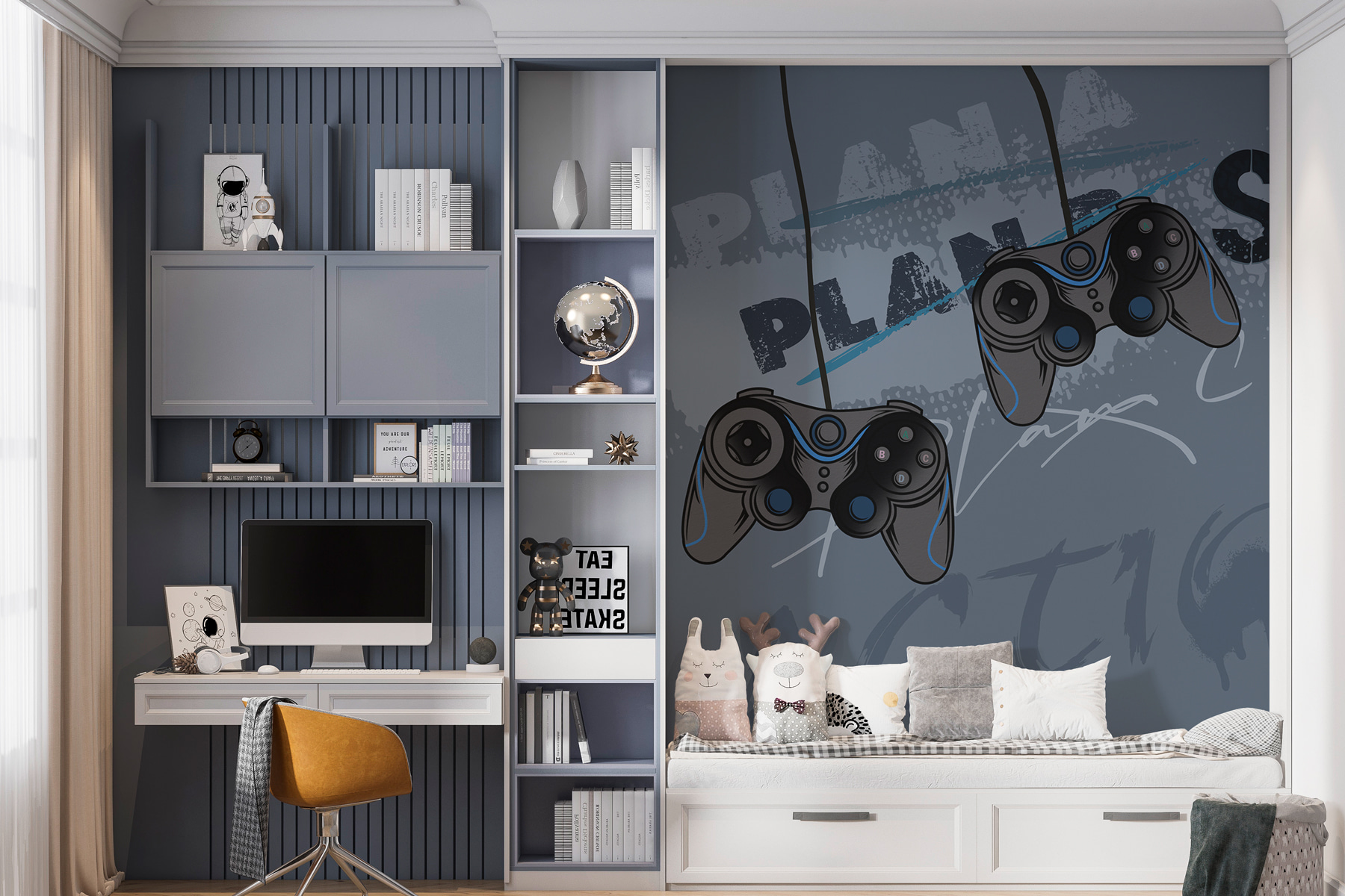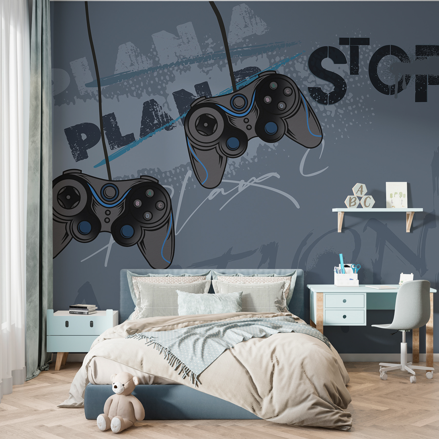 Imaginați-vă că ridicați privirea de pe ecran și vedeți această pictură murală gri, elegantă, cu controllere de jocuri video chiar pe perete. Este ca și cum ai păși într-o zonă de joc futuristă! Perfect pentru iubitorii de jocuri de orice vârstă – fie că este ascunzătoarea adolescentului dvs., noua cameră cool a copilului dvs. sau o atingere șic pentru spațiul unui tânăr adult. Fundalul gri cu accente de albastru în controlere adaugă un vibe modern, edgy. Aproape că poți auzi muzica intensă a jocului și simți energia acțiunii de fiecare dată când te uiți la el. Este mai mult decât o simplă decorațiune; este o piesă care aduce personalitate și distracție în cameră. Și sincer, nu ar da naștere unor conversații grozave atunci când vin prietenii? “Oh, asta? Doar pictura mea murală cu jocul meu.” În plus, este un stimulent instantaneu al dispoziției. Pregătiți-vă să vă simțiți inspirați – fie că este vorba de scoruri mari sau doar de un spirit ridicat!