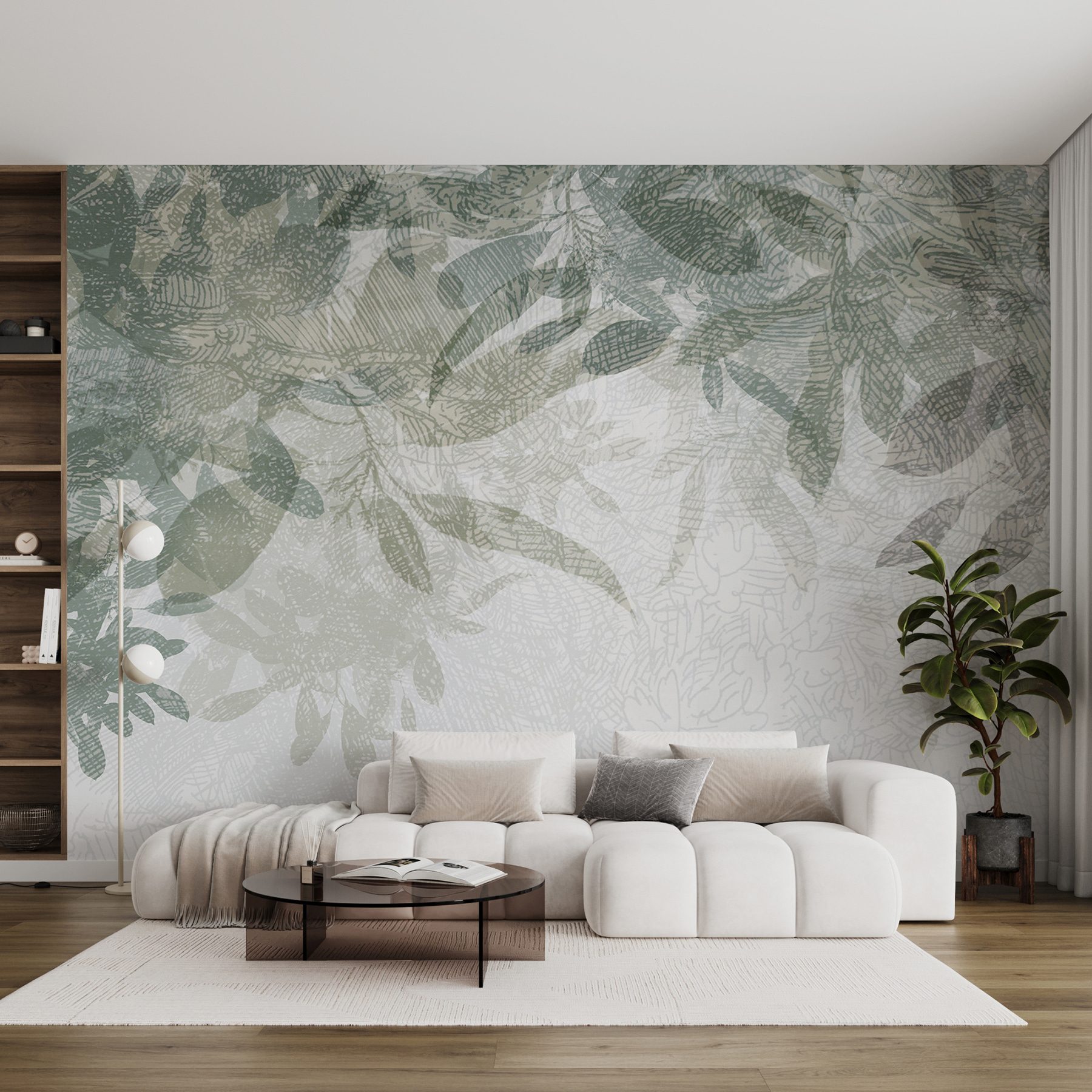 Imaginați-vă acest lucru: intrați în sufragerie și sunteți întâmpinați de frunze moi, umbroase, care emană o vibrație liniștită. Este aproape ca și cum ai avea natura în casă – fără insecte. Fie că sorbiți cafeaua dimineața sau citiți o carte seara, această pictură murală aduce acea atingere liniștitoare. Este subtilă, dar iese în evidență și adaugă profunzime oricărui spațiu.