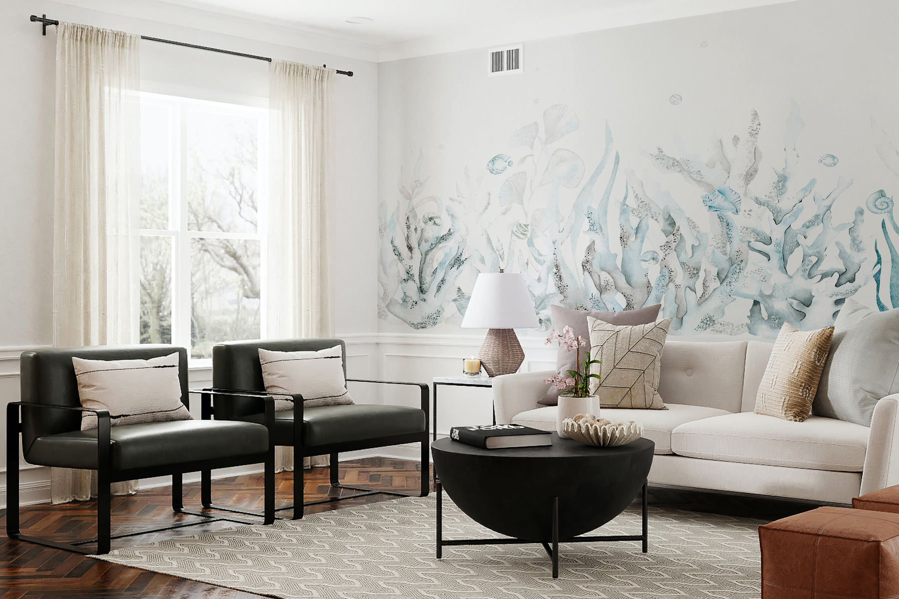 Imaginați-vă că vă scufundați într-un peisaj subacvatic de vis fără să vă udați! Această pictură murală subacvatică capricioasă este magie pură – nuanțele moi de albastru și verde vă fac să vă simțiți ca și cum ați pluti printre valuri blânde și pești curioși. Perfectă pentru a transforma un spațiu într-o evadare senină, este ca și cum ai avea propria ta vedere personală la ocean. Ideală pentru o cameră de copii, o baie sau chiar o cameră de zi pentru cei care adoră decorul unic, prezența sa liniștitoare este de-a dreptul terapeutică. Aproape că veți auzi foșnetul moale al apei și veți simți briza rece a oceanului. Poate transforma orice perete obișnuit într-o felie de rai subacvatic!