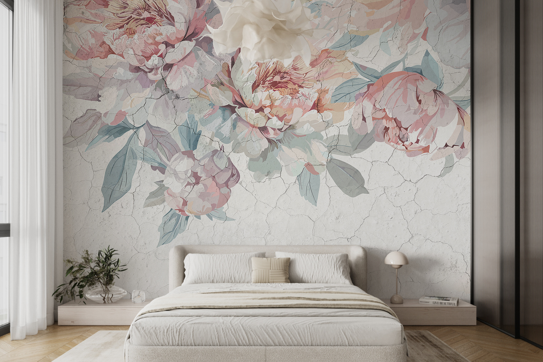 Transformați orice cameră într-o evadare senină cu Fototapet Pastel Peonies pe un fundal ușor crăpat. Imaginați-vă: intrați în spațiul dvs. și iată-l – buchețele blânde de bujori în culori pastelate blânde dansând pe perete. Este ca și cum ai avea o grădină chiar în interior, fără alergiile la polen. Petalele delicate aduc căldură și farmec, făcând chiar și cea mai plictisitoare zi de marți să se simtă specială. Oaspeții s-ar putea să se oprească, să-și soarbă cafeaua și să spună: “Uau, este minunat”. Serios, cine nu și-ar dori asta? Perfectă pentru un colț confortabil sau pentru un perete fabulos, această pictură murală condimentează fără efort orice atmosferă. În plus, este menită să stârnească bucurie – doar imaginați-vă că vă scufundați în această atmosferă primitoare!