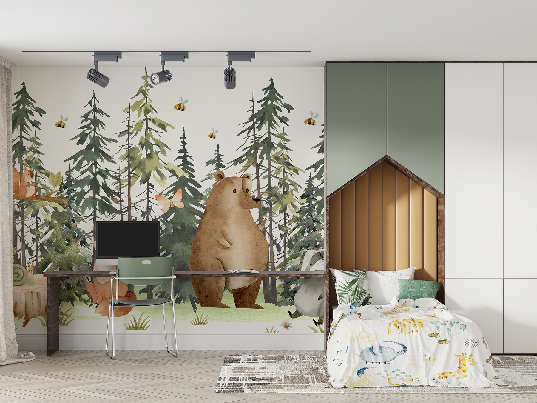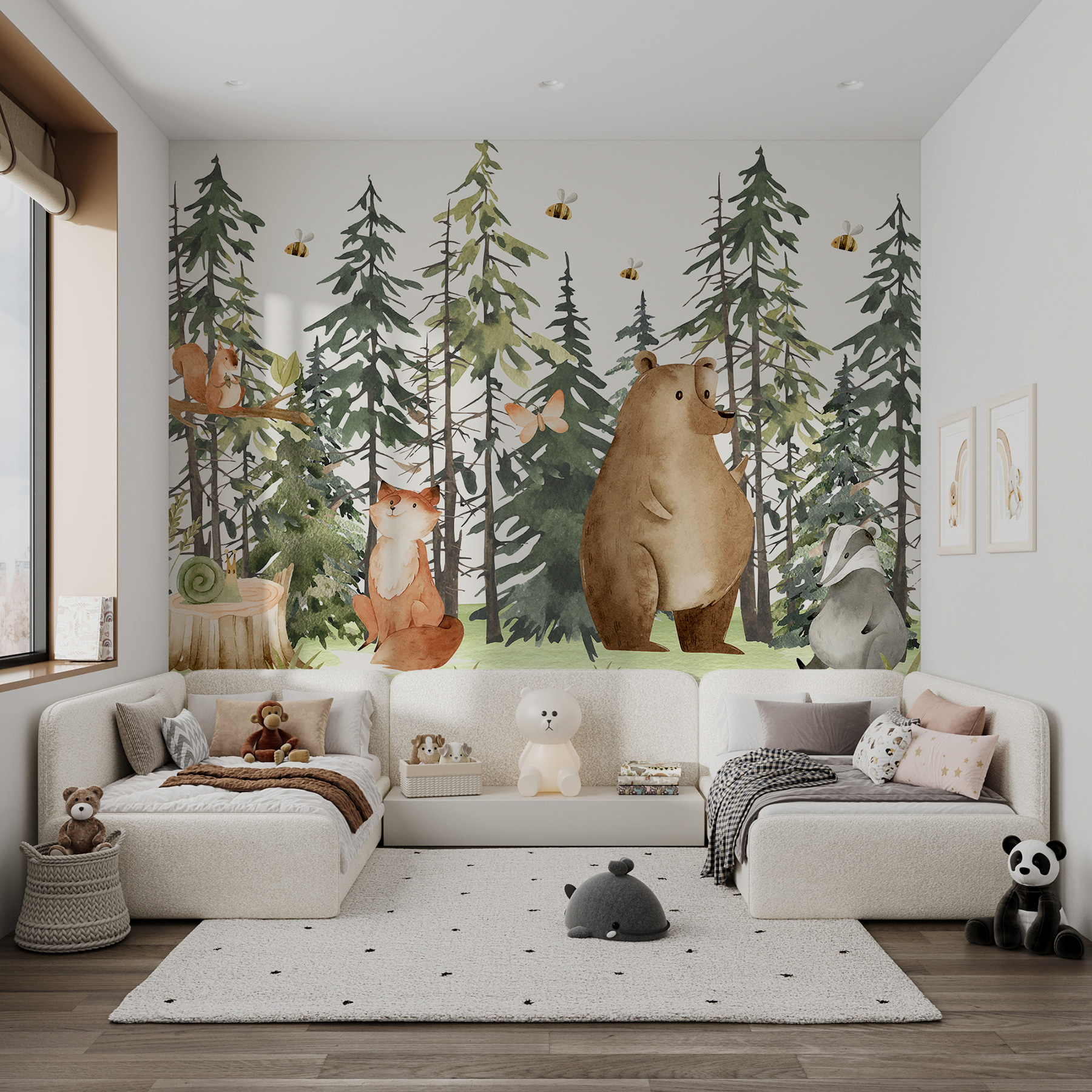 Transformați orice spațiu într-o țară a minunilor capricioasă cu această pictură murală fermecătoare cu un melc încântător care se odihnește pe o buturugă confortabilă. Imaginați-vă acest lucru: lumina caldă a soarelui filtrată prin pinii înalți, în timp ce micile creaturi precum vulpile și urșii vi se alătură pentru ceai – ei bine, metaforic vorbind! Culorile blânde și animalele sălbatice drăguțe emană o vibrație magică care poate calma chiar și cele mai ocupate minți. Imaginați-vă că vă treziți la această scenă veselă, simțindu-vă instantaneu învăluiți de natură. Este ca și cum ai aduce o felie de pădure chiar în casa ta, perfectă pentru camerele copiilor sau pentru orice loc care are nevoie de un strop de încântare. În plus, s-ar putea să inspire niște visuri cu ochii deschiși încântătoare!