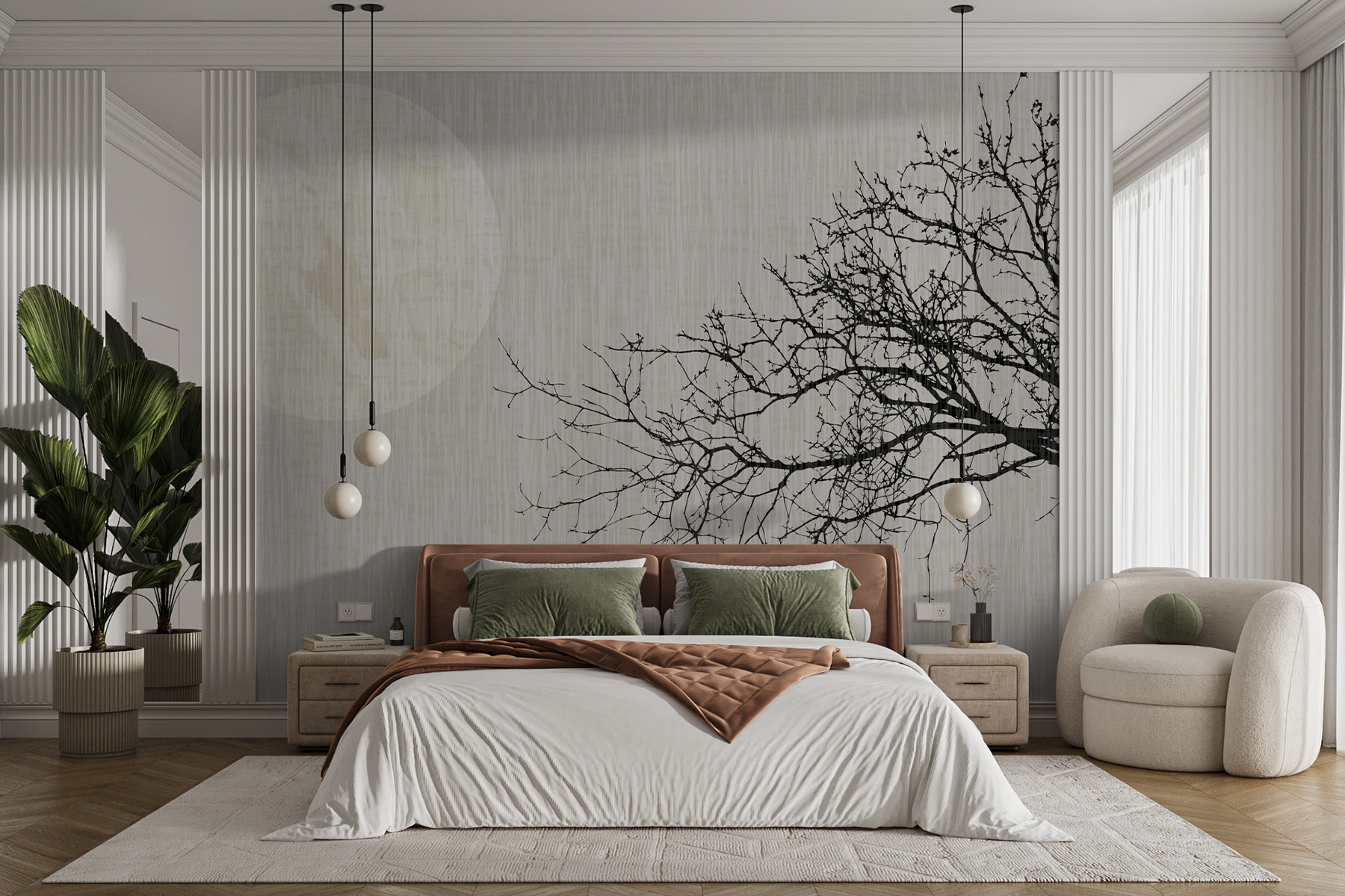 Doriți să adăugați un strop de mister și calm spațiului dvs.? Imaginați-vă acest lucru: o pictură murală izbitoare care înfățișează un copac gol, profilat de strălucirea moale a lunii pline. Se numește “Copacul fără frunze”, dar nu este deloc gol. Această pictură murală vorbește în șoaptă – invitându-vă să faceți o pauză, să respirați și poate chiar să visați cu ochii deschiși. Perfectă pentru un colț de lectură confortabil sau un hol care are nevoie de o notă de intrigă artistică. Este ca și cum pereții dvs. ar putea spune povești sau ar face aluzie la aventuri secrete. Deci, sunteți gata să transformați o pânză albă în ceva plin de suflet?