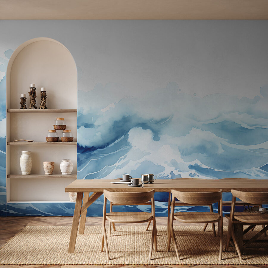 Transformați-vă spațiul cu frumusețea acestei picturi murale în acuarelă care înfățișează valuri și nori. Imaginați-vă că pășiți într-o atmosferă senină în care agitația dispare, lăsându-vă doar pe dvs. și ritmul blând al oceanului. Albastrul și albastrul moale evocă o atmosferă liniștită, perfectă pentru a crea un colț confortabil pentru citit sau pur și simplu pentru a visa cu ochii deschiși în timp ce vă sorbiți băutura preferată. Este ca și cum ai aduce o bucată de litoral chiar în casa ta – nu sunt necesare degete de nisip! Perfect într-o cameră de zi, dormitor sau chiar un colț creativ. Pregătiți-vă pentru complimente și, eventual, un pic de invidie din partea prietenilor!