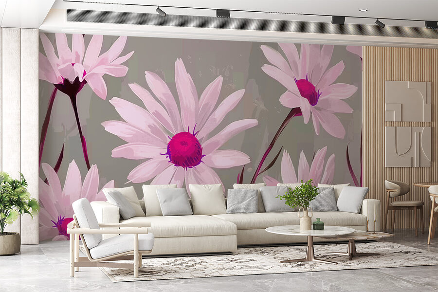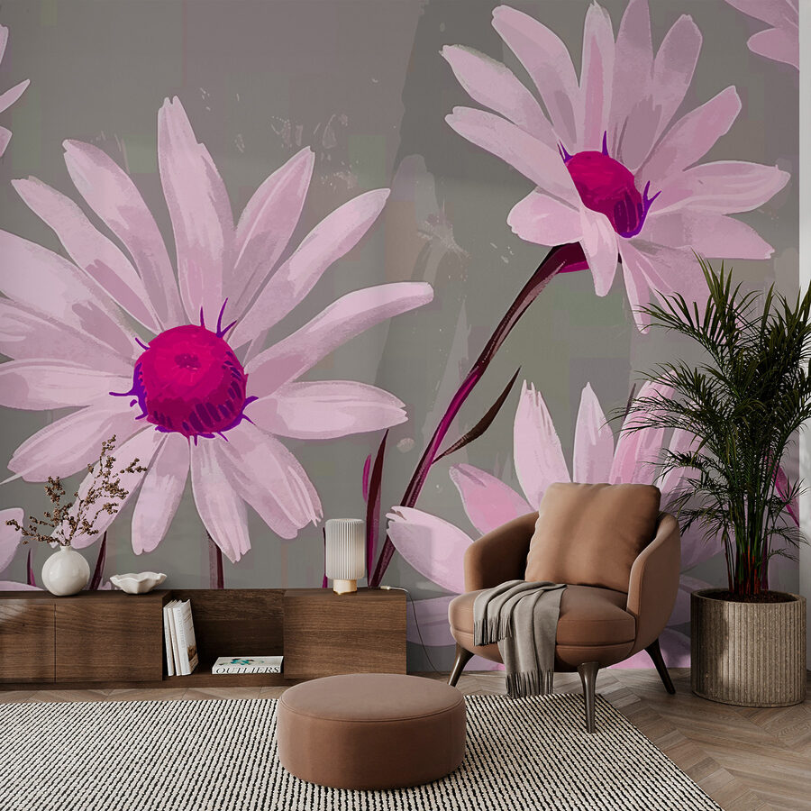 Transformați orice cameră cu această pictură murală de vis cu un grup încântător de flori albe, fiecare cu un centru mov capricios. Este ca o gură de aer proaspăt care aduce natura chiar în casa dvs. Imaginați-vă că intrați într-un spațiu în care florile vibrante dansează pe pereți, ridicând instantaneu starea de spirit. Perfect pentru un colț confortabil, o cameră de zi veselă sau chiar acel perete care are nevoie de puțină dinamică. Este greu să nu zâmbești la aceste petale fermecătoare. Oferiți pereților dvs. dragostea pe care o merită – cine ar fi crezut că decorul floral poate fi atât de distractiv?