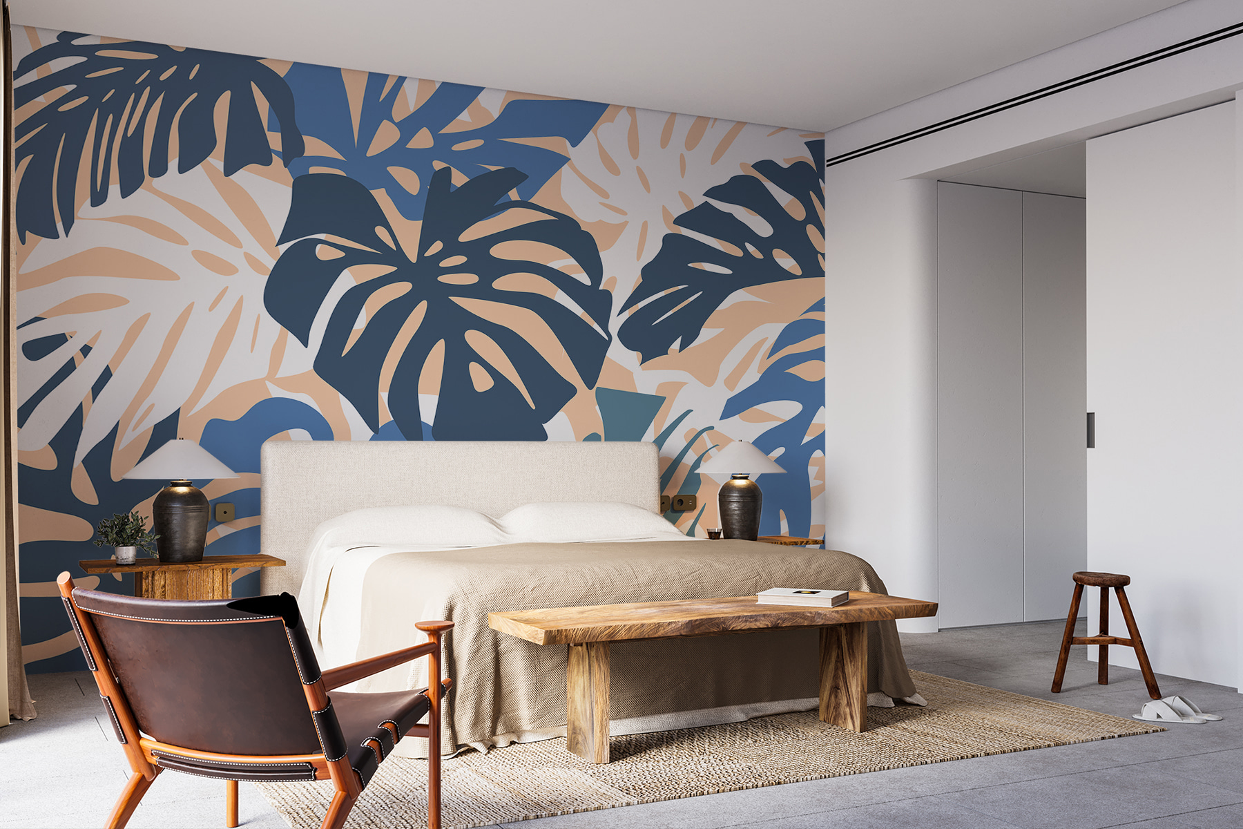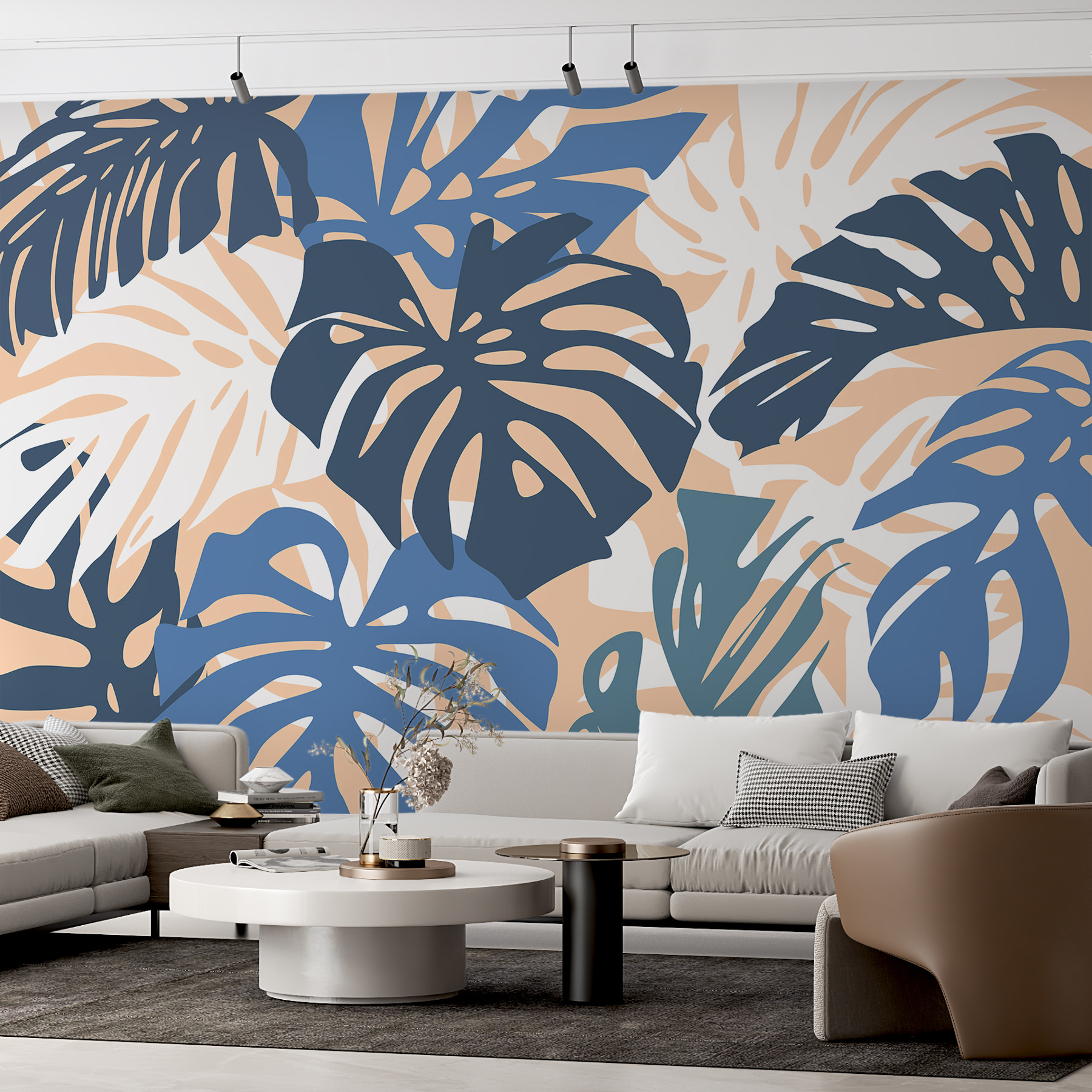 Transformați-vă spațiul cu această murală uimitoare cu frunze albastre și albe. Imaginați-vă că pășiți într-o escapadă tropicală de fiecare dată când intrați în cameră. Frunzele luxuriante dansează jucăuș pe un fundal moale, creând un vibe vibrant, dar liniștitor. Este perfect pentru a înveseli o zonă de zi sau pentru a adăuga farmec unui colț de lectură confortabil. Imaginați-vă sorbindu-vă cafeaua de dimineață aici, înconjurați de frunzișul de vis. Ca să nu mai vorbim de faptul că va stârni conversații – oaspeții ar putea chiar să creadă că se află într-un refugiu la malul mării. O notă de natură, un strop de stil și o mulțime de farmec!