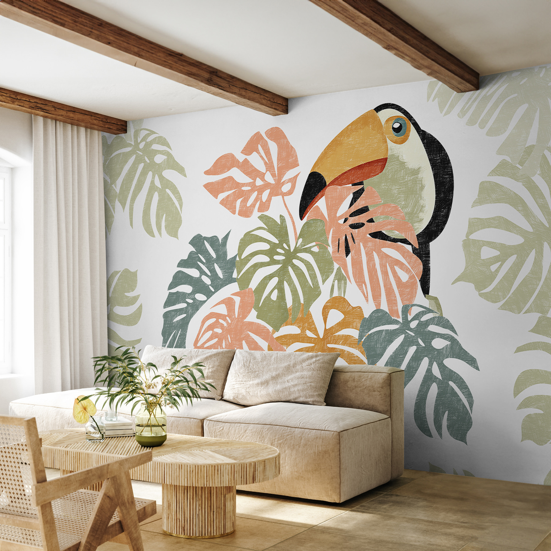 Culorile? Sunt potrivite – verde subtil, portocaliu cald și albastru liniștitor… perfecte pentru a adăuga un strop de aventură fără a copleși camera. Este ideală pentru iubitorii de natură sau pentru oricine dorește un strop de fantezie pe pereții săi.