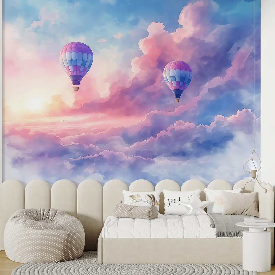 Imaginați-vă că vă treziți în fiecare dimineață la această scenă de vis cu balonul cu aer cald! “Fototapet w01012” surprinde momentul magic al răsăritului – este ca și cum te-ai pierde într-un vis cu ochii deschiși în acuarelă. Perfect pentru oricine iubește un pic de fantezie în decorul său. Norii par atât de pufoși și moi încât aproape că îți vine să îi atingi, iar culorile pastelate? Perfecțiune absolută. Fie că aranjezi camera unui copil, fie că vrei doar să aduci niște vibrații senine în spațiul tău, această pictură murală te acoperă. Gândiți-vă doar la poveștile și aventurile pe care vi le-ați putea imagina având loc pe acest cer!