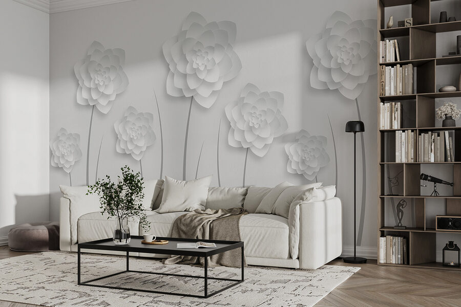 Imaginează-ți asta: ești relaxat cu o ceașcă de ceai, o carte bună în mână și aceste flori senine veghează asupra ta. Prietenii care trec pe aici vor spune: “Uau, de unde ai luat asta?” Este un starter de conversație instant! În plus, designul său curat, alb pe gri, se îmbină perfect cu orice stil de decor, adăugând o notă de rafinament fără a fi prea tare. Serios, cine ar fi crezut că o pictură murală poate face camera ta să pară o galerie de artă modernă? Încercați “Fototapet w01021” – pereții dvs. vă vor mulțumi!