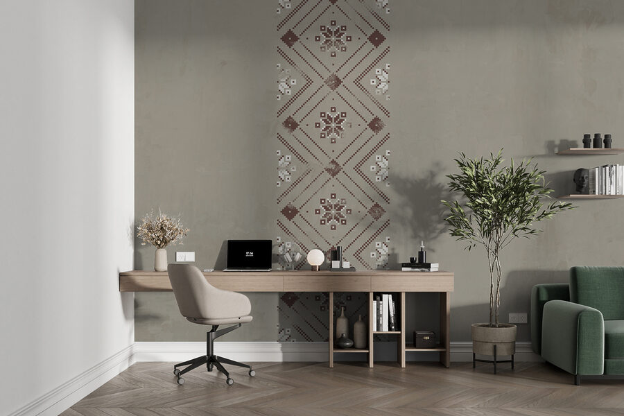 Căutați o pictură murală care să vă transforme instantaneu spațiul? Uitați-vă la Fototapet w01027v1! Nu este doar un tapet de design; este un starter de conversație. Imaginați-vă această frumusețe pe peretele dvs., atrăgând privirile tuturor cu modelele sale complexe, aproape ca o tapiserie. Tonurile pământii, atenuate sunt ca o îmbrățișare caldă pentru orice cameră, confortabilă, dar șic.