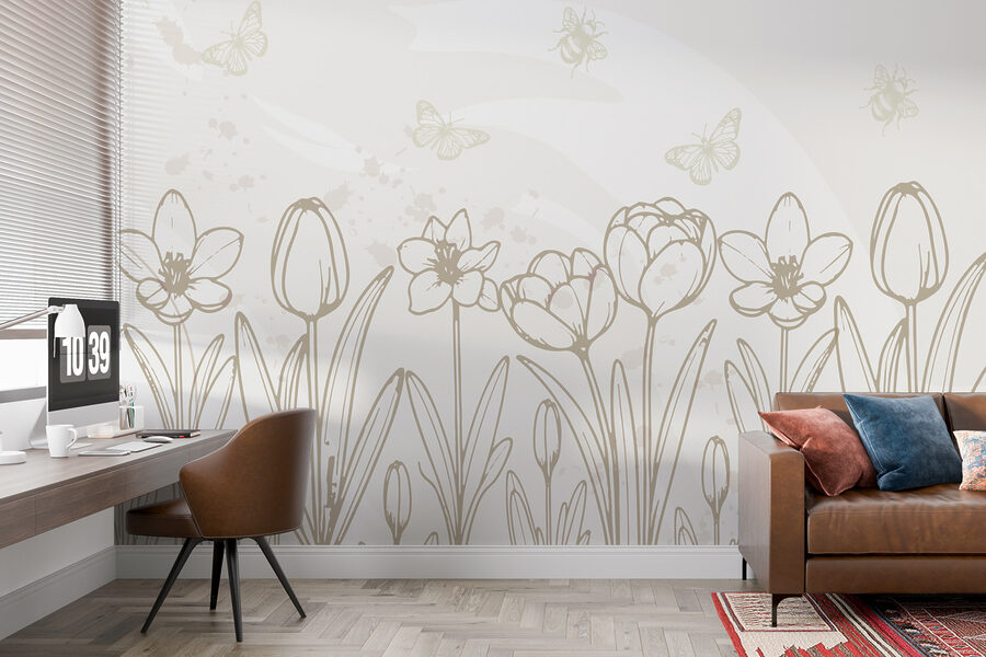 Transformarea unui spațiu poate fi la fel de ușoară ca și agățarea acestei picturi murale fermecătoare, cu desene line cu flori și fluturi. Imaginați-vă că pășiți într-o cameră în care florile delicate se leagănă ușor alături de fluturi jucăuși, creând o scenă desprinsă direct dintr-o grădină însorită. Liniile moi și paleta liniștitoare invită la un sentiment de calm, făcându-l perfect pentru un colț confortabil sau o zonă de living vibrantă. Este ca și cum ai aduce o felie de natură în interior, fără polen. Prietenii vor complimenta cu siguranță vibe-ul proaspăt și, cine știe, poate că un fluture sau doi vor zbura înăuntru doar pentru a se alătura distracției!