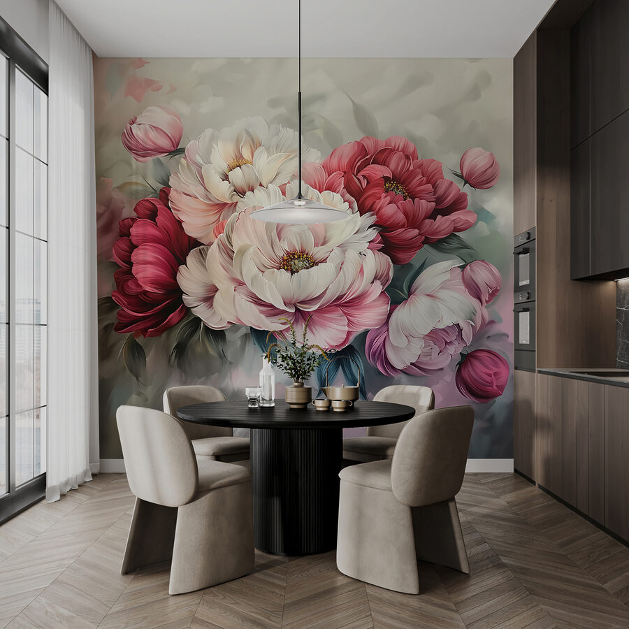 Transformați un perete gol într-un paradis înflorit cu această pictură murală vibrantă cu flori uimitoare. Imaginați-vă că pășiți într-un spațiu care pare viu, unde fiecare petală pare să danseze și să invite la bucurie. Fie că este vorba de un colțișor confortabil sau de un living plin de viață, această pictură murală adaugă acea notă perfectă de personalitate. Imaginați-vă o după-amiază ploioasă, o ceașcă caldă de cafea și absorbiți frumusețea florilor de bujor. Este ca și cum ai avea o grădină în interior, dar fără a uda. Un fundal unic care ar putea face ca fiecare zi să se simtă ca primăvara!