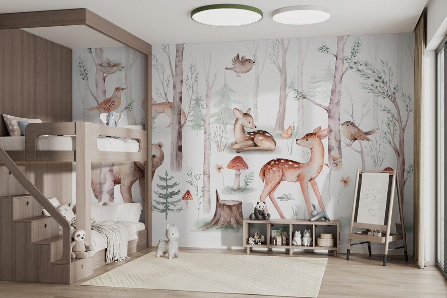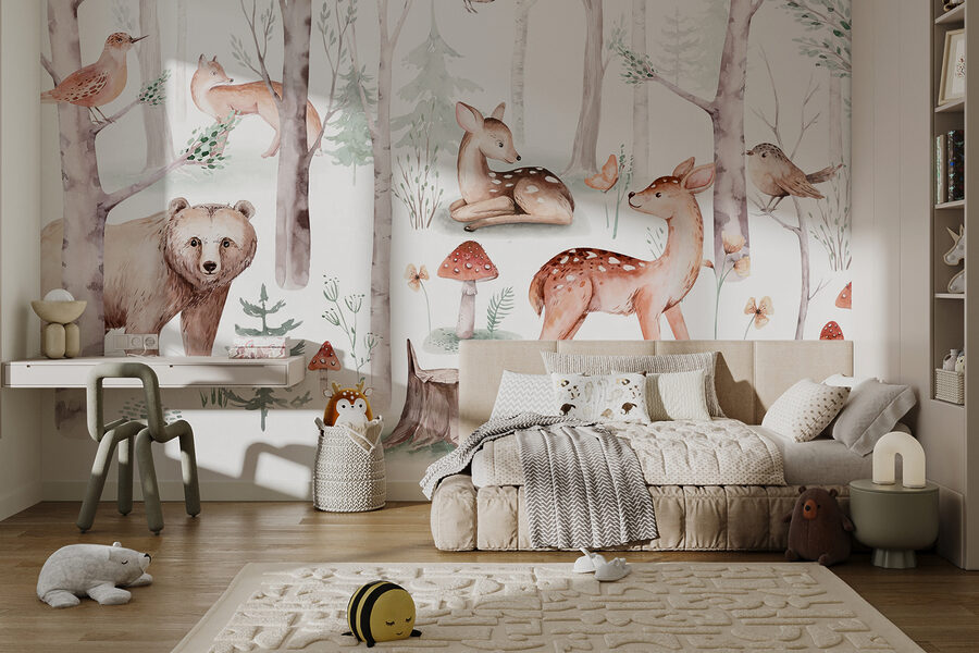 Scufundați-vă într-o pădure capricioasă cu această pictură murală fermecătoare. Imaginați-vă că aveți un colțișor de pădure confortabil în propriul spațiu – complet cu căprioare prietenoase, vulpi curioase și păsări care cântă încet. Este ca o scenă blândă de poveste împrăștiată pe peretele tău! Perfect pentru iubitorii de natură sau pentru oricine are nevoie de o evadare instantanee. Imaginați-vă sorbind un ceai, cu o carte în mână, în timp ce acest cadru senin vă cheamă să vă relaxați. Cine ar fi crezut că arta murală poate fi atât de… liniștită? Transformați-vă camera într-un refugiu liniștitor în care pădurea este mereu în floare.
