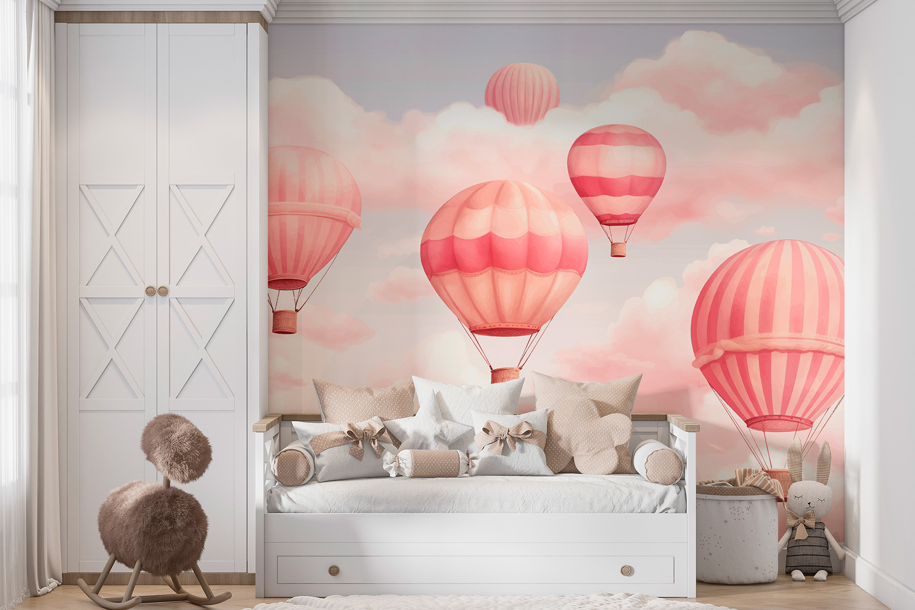 Imaginați-vă că intrați într-o cameră și sunteți purtați într-o călătorie capricioasă prin cer! Această pictură murală “Grup de baloane cu aer cald” este perfectă. Este ca și cum ai captura un vis însorit, cu baloane care plutesc leneș printre nori pufoși. Perfect pentru a adăuga un pic de dorință de a călători în orice spațiu – sufragerie, camera copiilor, orice. Aproape că vei auzi foșnetul moale al țesăturii și vei simți căldura soarelui pe fața ta. O evadare atât de fermecătoare chiar pe peretele tău. Nu vă place când decorul stârnește o mică aventură?
