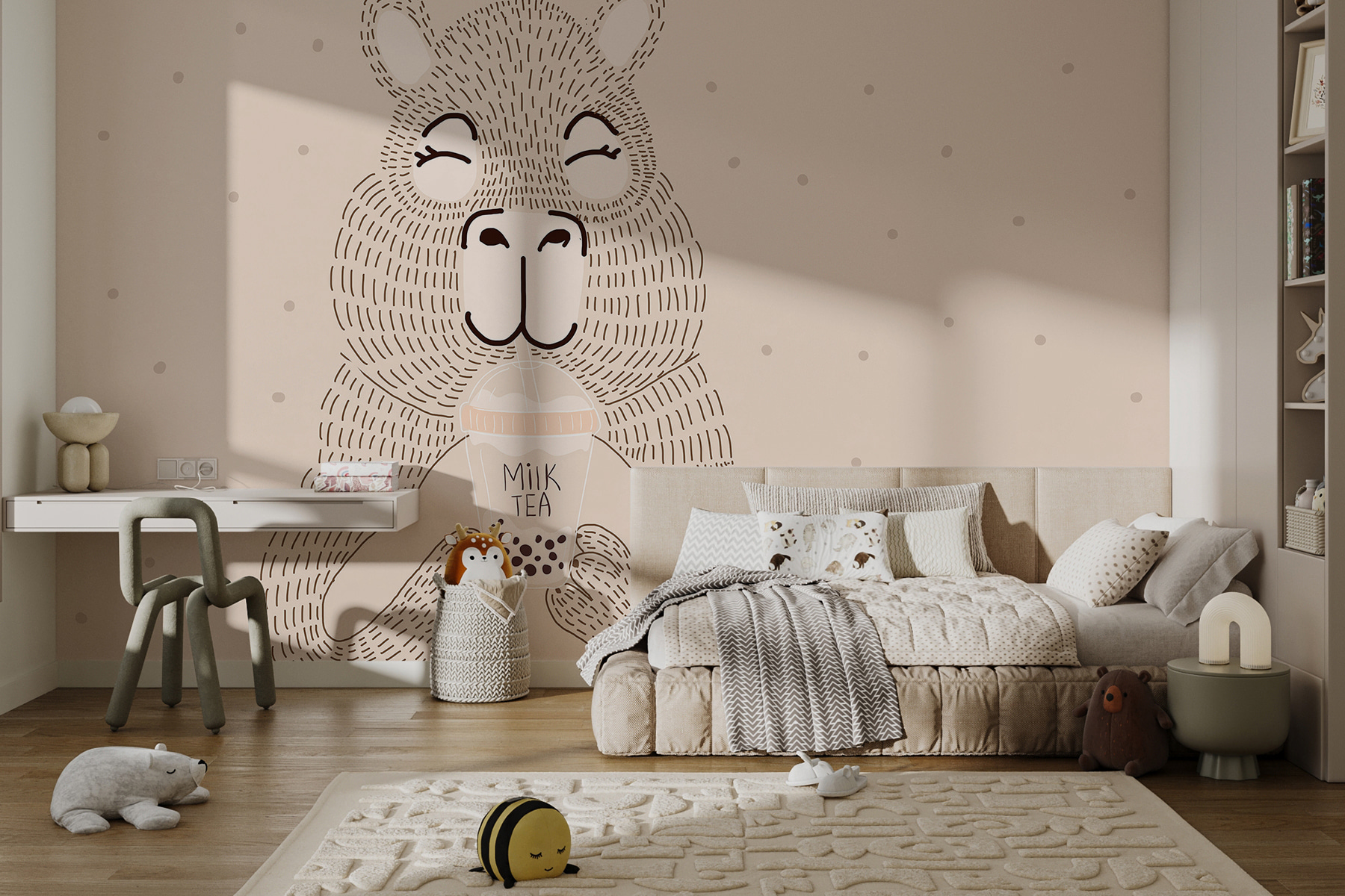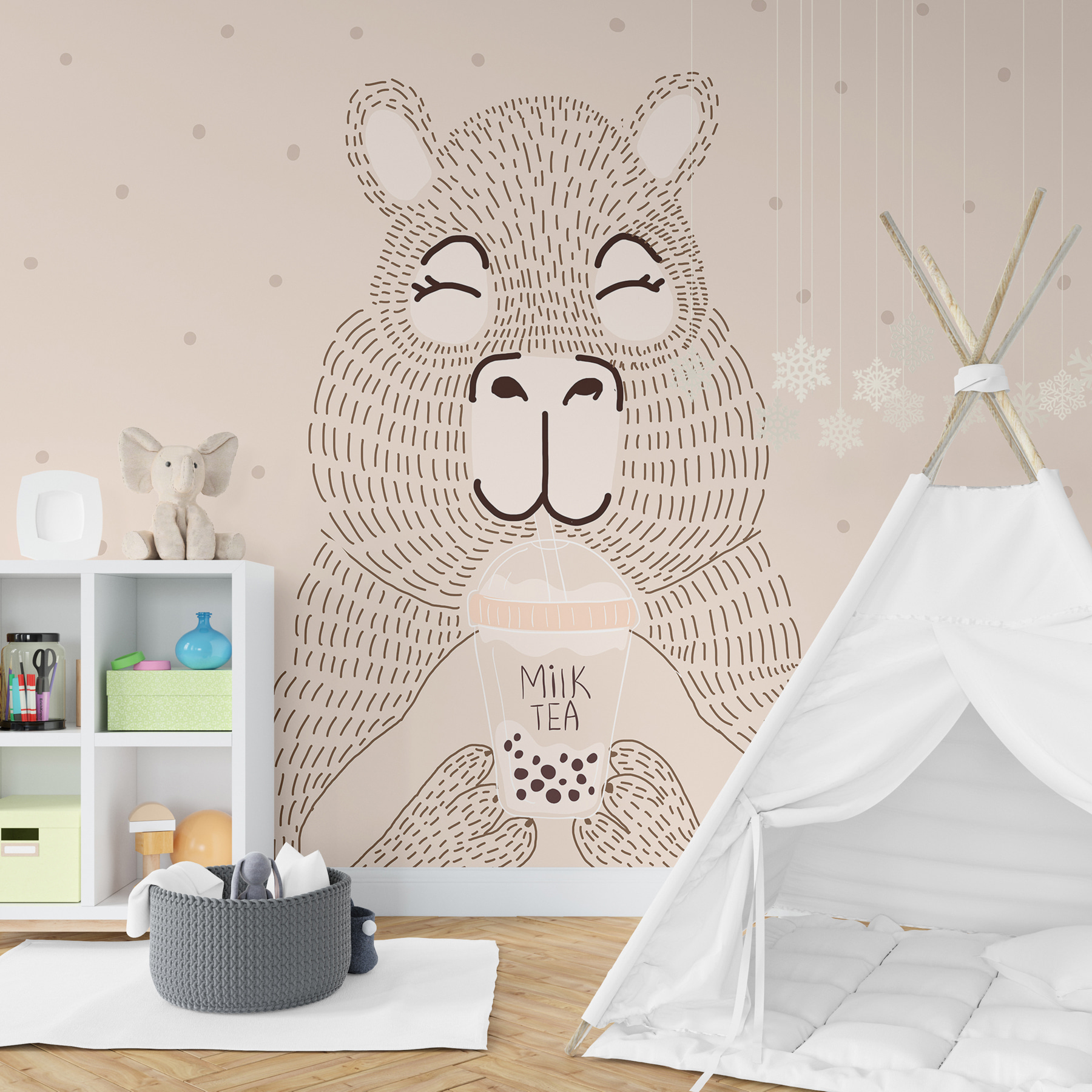 Transformați-vă spațiul cu această pictură murală fermecătoare a unui urs care savurează fericit ceai cu bule – este ca și cum ați invita o poveste capricioasă direct pe peretele dvs. Perfectă pentru a adăuga o notă de confort jucăuș în orice cameră, această pictură murală îmbină drăgălășenia și excentricitatea în cel mai bun mod. Imaginați-vă că vă treziți în fața acestui urs vesel, care vă stârnește zâmbetul mai repede decât cafeaua de dimineață. Prietenii și familia vor adora farmecul său simplu. Nu este doar decor; este un memento zilnic pentru a savura bucuriile simple ale vieții, câte o bulă pe rând.