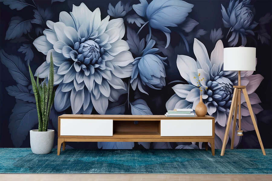 Transformați-vă spațiul cu “Fototapet Midnight Blossoms in Monochrome”. Acest design uimitor aduce o notă de eleganță cu albastrul său profund și griurile moi, dând senzația că vă plimbați printr-o grădină de vis în amurg. Imaginați-vă că vă sorbiți cafeaua în timp ce priviți aceste flori fermecătoare, fiecare petală șoptindu-vă secrete de seninătate. Perfectă pentru orice încăpere, aceasta ridică starea de spirit fără a fi copleșitoare. Este ca și cum ai avea poezia naturii chiar pe perete, inspirându-ți vise cu ochii deschiși și momente confortabile. Cine ar fi crezut că florile pot fi atât de elegante și primitoare?