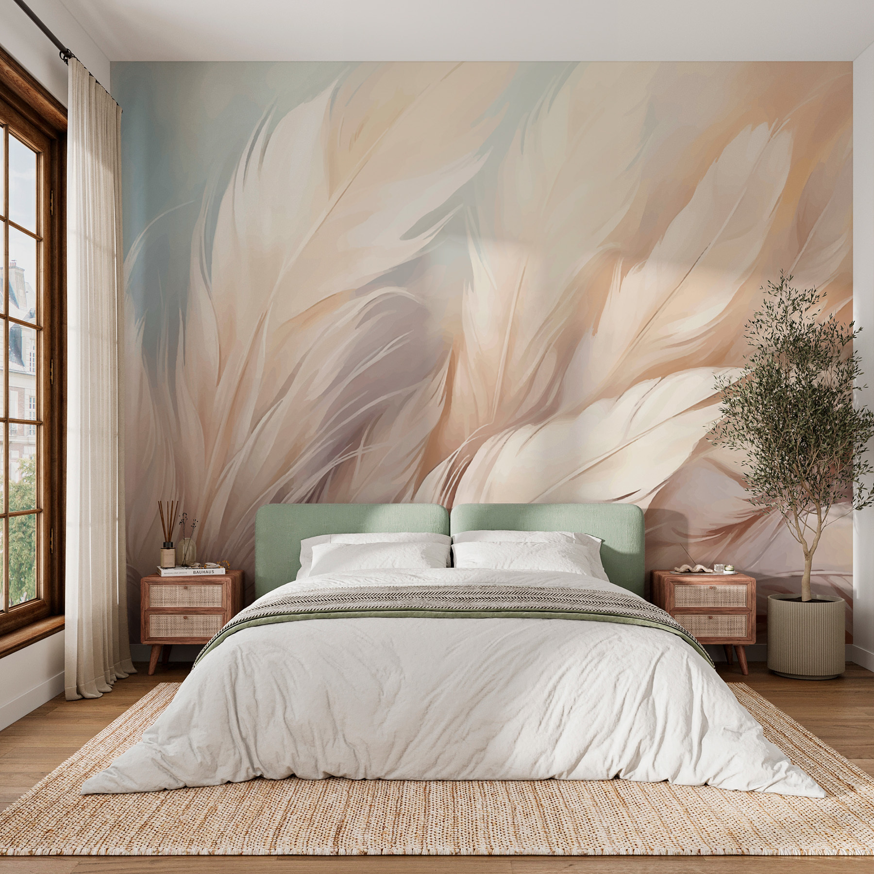 Imaginați-vă că intrați într-o cameră și vă simțiți ca și cum ați fi îmbrățișați ușor de un nor. Asta face această pictură murală “Soft Feathers in Serene Hues”. Este ca o șoaptă liniștitoare pe pereții dvs., cu aceste pene delicate dansând în nuanțe liniștite. Perfect pentru relaxare după o zi lungă – este un fel de yoga pentru camera ta. Albastre și cremuri moi care se simt ca un cântec de leagăn pentru sufletul tău! Așezați-l în camera de zi sau în dormitor; are acea vibrație liniștitoare pe care toată lumea o dorește. În plus, nu trebuie niciodată șters praful.