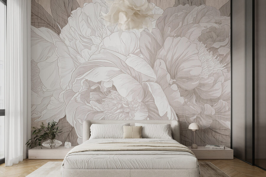 Imaginează-ți asta – te relaxezi în sufragerie, cu o ceașcă de ceai în mână, iar peretele tău este împodobit cu o pictură murală uimitoare cu bujori. Este ca și cum florile însele au șoptit eleganță în cameră. Schița monocromă îi conferă acea vibrație sofisticată, aproape ca și cum te-ai afla într-o galerie de artă șic sau poate chiar într-o grădină fermecată și aerisită. Perfectă pentru oricine iubește un strop din farmecul naturii, fără să-l strige. În plus, aduce o atmosferă calmă și liniștită, adăugând un pic de liniște zilelor aglomerate. Ideal, nu-i așa?