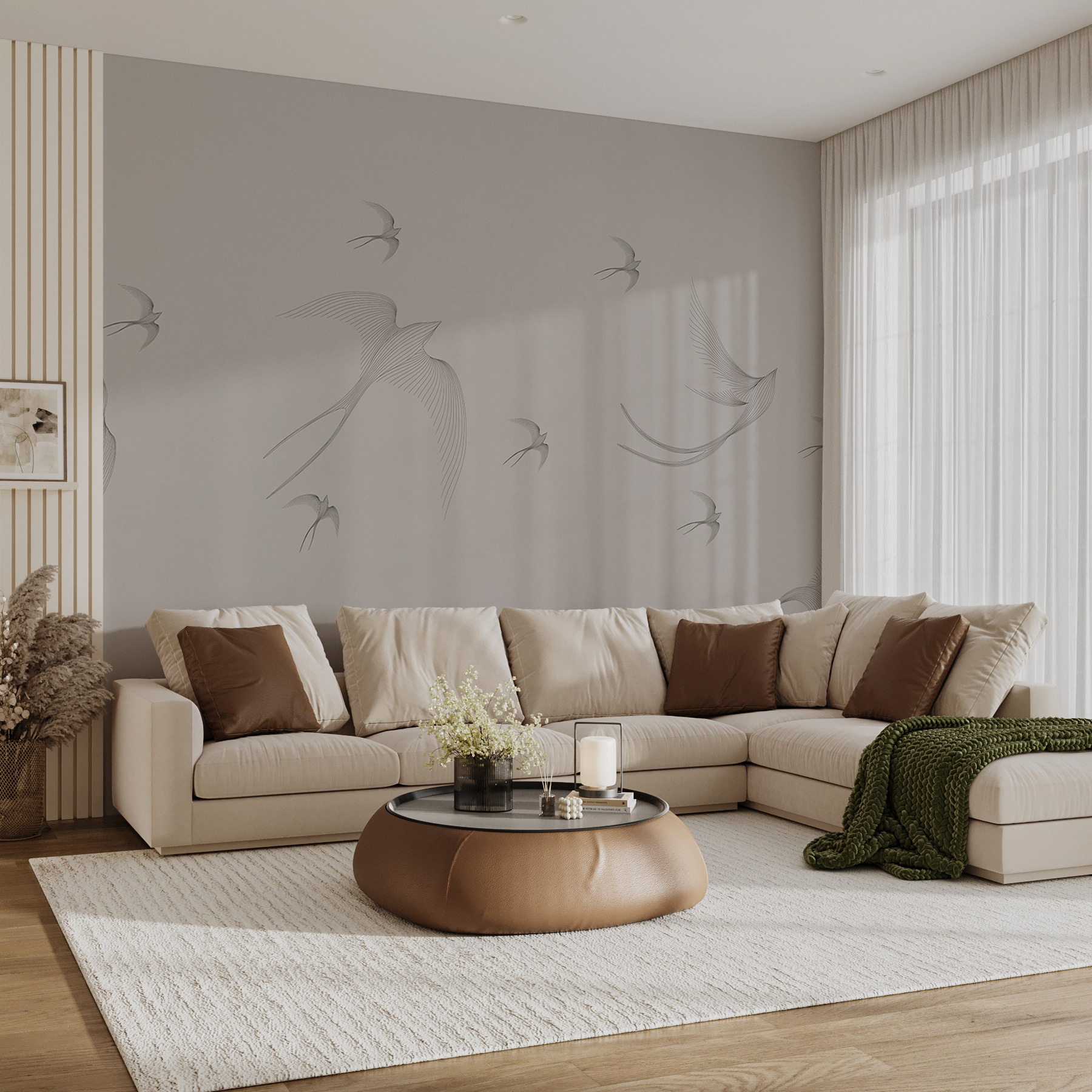 Transformați un perete plictisitor într-un cer uluitor cu “Fototapet Group of Birds Flying”. Această pictură murală surprinde un dans grațios al păsărilor zburând prin aer, aducând un aer ușor și aerisit în orice cameră. Imaginați-vă sorbind cafeaua dimineața, privind la aceste creaturi elegante în timp ce par să zboare chiar pe lângă dumneavoastră. Culorile blânde evocă calmul și seninătatea – perfect pentru un colț de lectură confortabil sau un spațiu de birou înălțător. Este ca și cum ai avea o bucată de natură în interior, amintindu-le tuturor că există întotdeauna loc pentru libertate și zbor, chiar și în cele mai aglomerate vieți. Lasă-ți pereții să zboare!