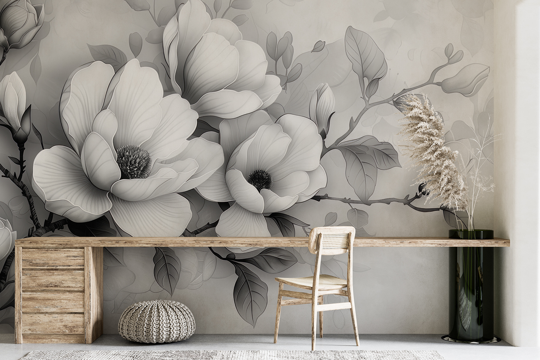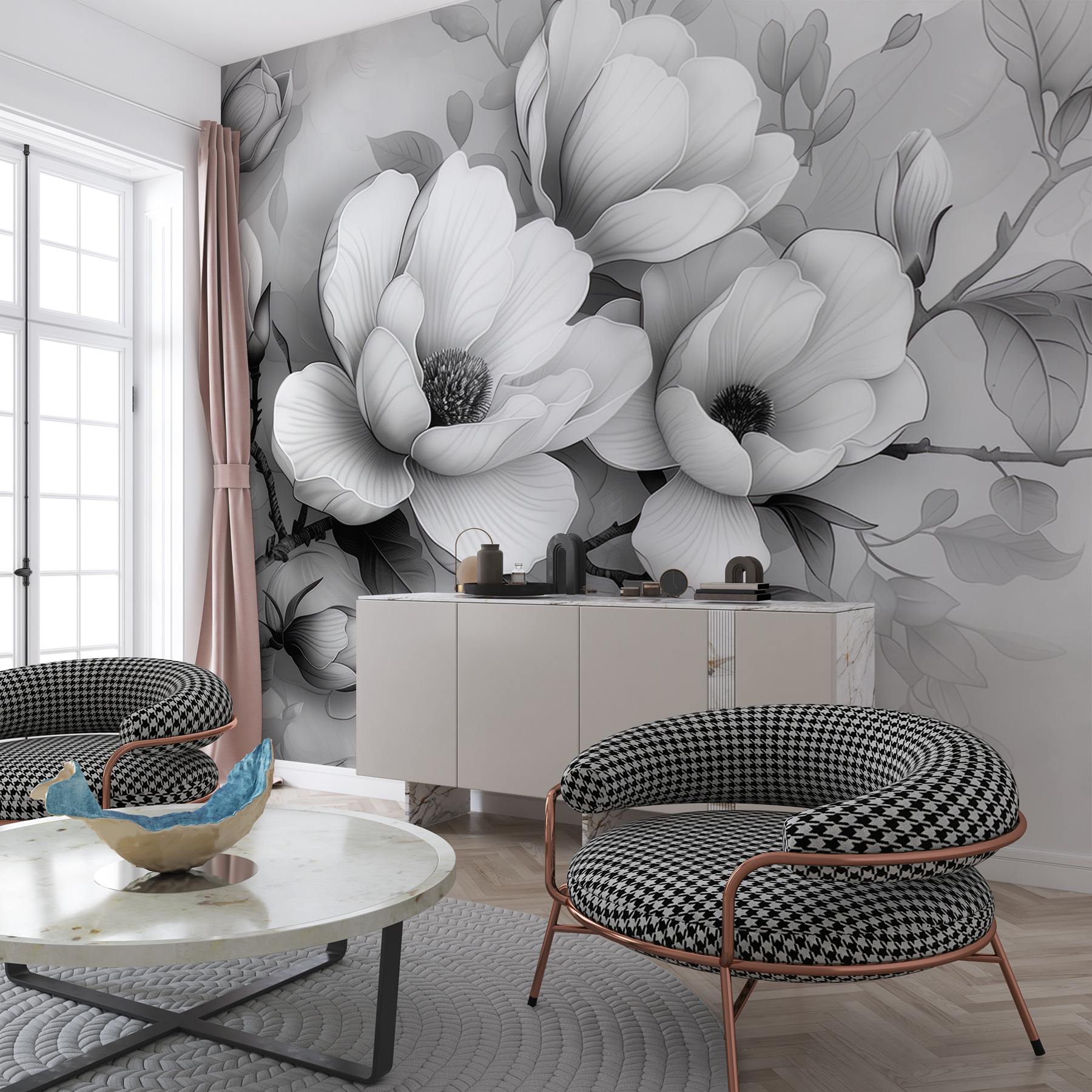 Transformați orice spațiu cu această pictură murală uimitoare, “Monochrome Bloom in Serene Elegance”. Imaginați-vă o dimineață liniștită, cu lumină și aceste flori delicate care vă înfrumusețează peretele. Designul îndrăzneț, dar delicat, echilibrează fără efort sofisticarea cu frumusețea naturii. Este ca și cum ai invita o grădină liniștită în casa ta, perfectă pentru a visa cu ochii deschiși sau pentru discuții confortabile. Fie că este vorba de un living șic sau de un colț liniștit într-un dormitor, această pictură murală șoptește eleganță fără să strige. Este o atingere fermecătoare care te face să te oprești, să respiri și să apreciezi arta simplității. Imaginați-vă doar sorbind o cafea în apropiere, simțind cum vibrația senină vă învăluie.