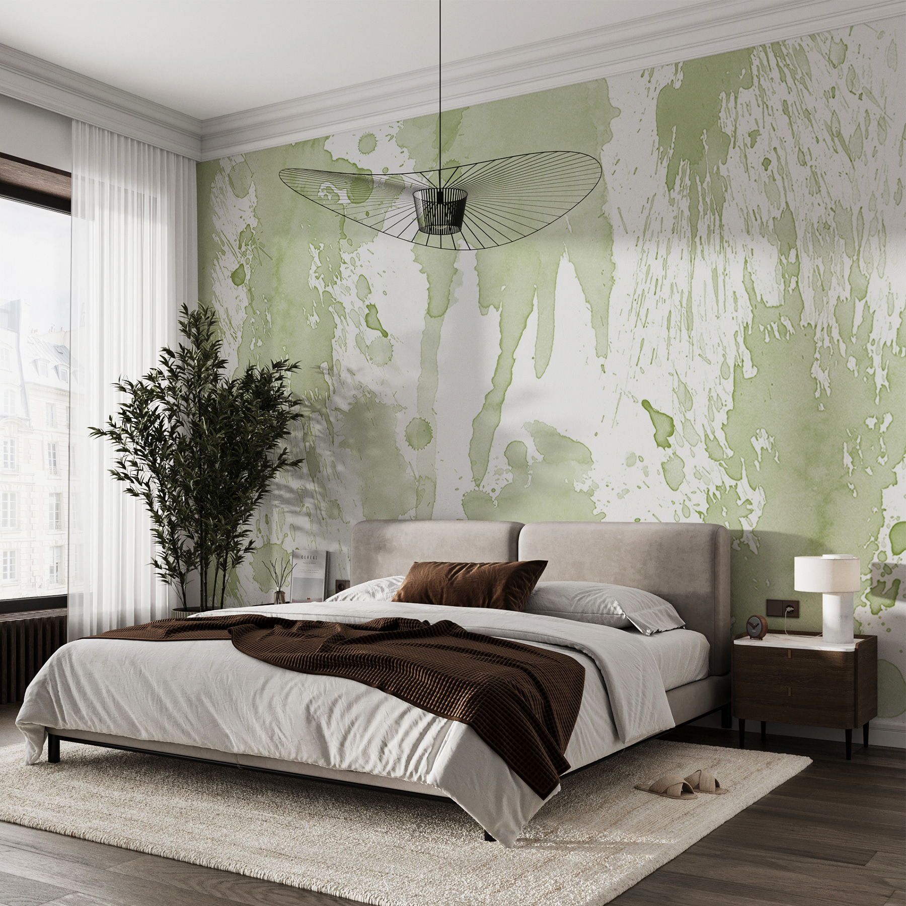 Imaginați-vă că intrați în sufrageria dvs. și sunteți întâmpinați de eleganța dezinvoltă a “Fototapet w01285”. Această piesă inspirată din acuarelă are un mod de a-ți atrage ușor privirea fără a copleși simțurile – este ca o șoaptă suavă de creativitate împrăștiată pe perete! Aceste tonuri verzi delicate și stropi de spirit liber îmi amintesc de o după-amiază leneșă de duminică petrecută pictând, ușor haotică, dar frumos senină. Perfectă pentru crearea unei vibrații unice în orice spațiu, această pictură murală îmbină farmecul fără efort al acuarelei cu o întorsătură modernă. Are acel aer relaxat, artistic, ca și cum artistul tău preferat ar fi trecut întâmplător pe la tine și ți-ar fi lăsat o bucată din sufletul său pe perete. Împletește-o cu decorul tău preferat și privește cum camera ta se transformă într-un paradis artistic. Adăugarea acestei picturi murale este ca și cum ți-ai înfășura casa într-o îmbrățișare caldă și primitoare, făcând din fiecare privire o mică aventură pentru ochi.