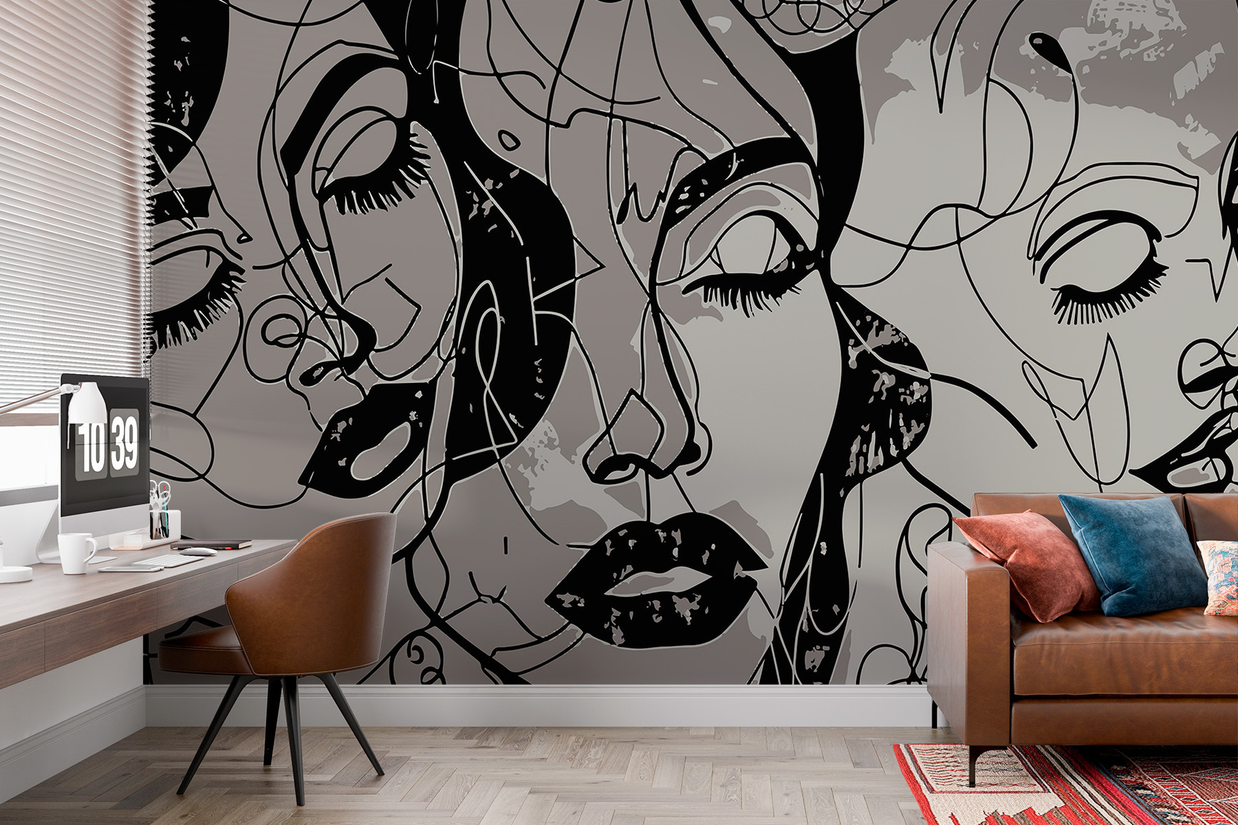Imaginați-vă un strop de eleganță modernă chiar pe peretele dvs. – “Fototapet w01297” este exact asta. Această piesă, așezată sub Murale de perete populare și Murale de perete pentru femei tinere, este ca și cum ai păși într-o lume abstractă, de vis. Linii îndrăznețe, curbe moi și acele fețe senine… este ca și cum ar șopti secrete pe care doar tu le poți auzi.