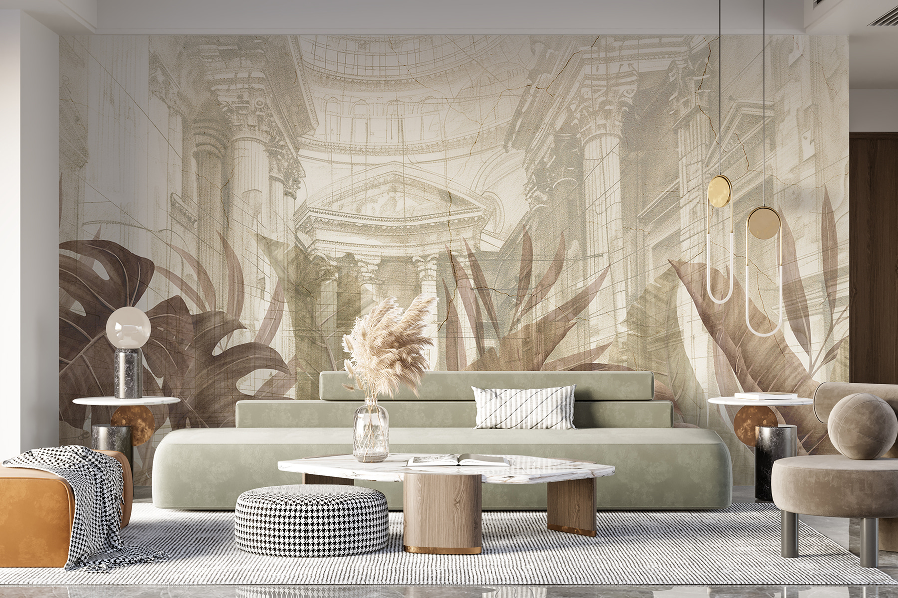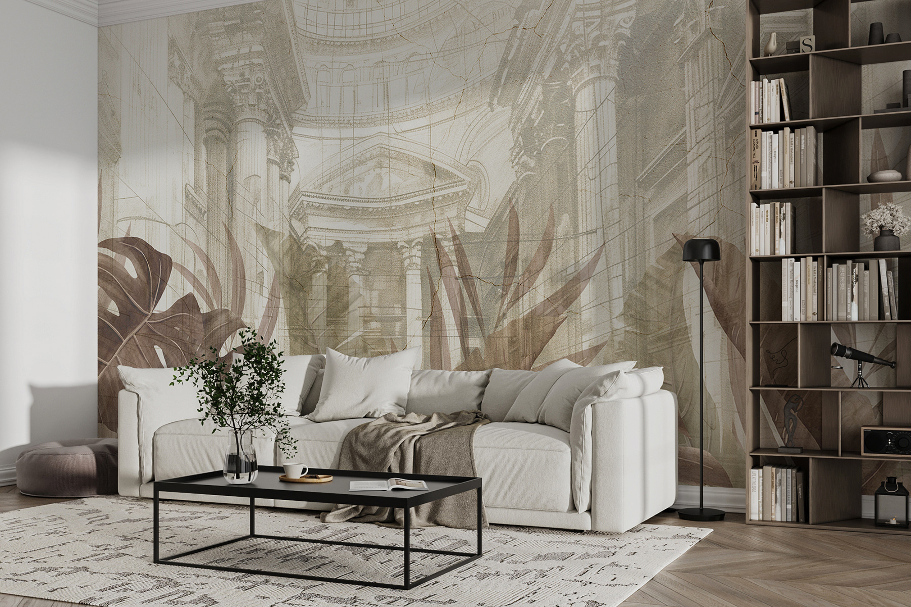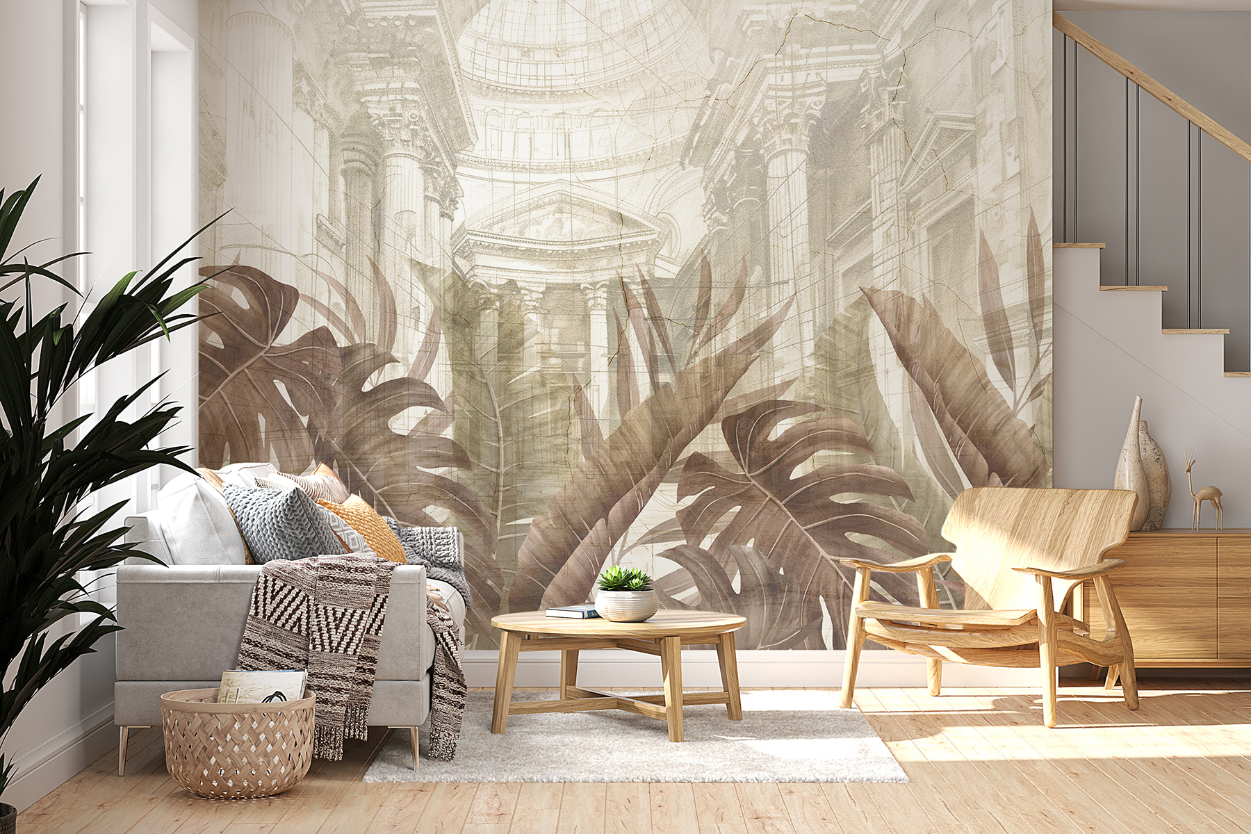 Ați simțit vreodată că pereții dvs. au nevoie de un pic de jazzing up? Check out “Fototapet w01311v1!” Este un amestec cool de frunze de palmier și o atingere de magie arhitecturală. Imaginați-vă acest lucru în camera dvs. de zi – este ca și cum ați aduce aerul liber înăuntru, fără toate insectele. Tonurile mute de gri și maro sunt super liniștitoare, perfecte pentru a vă relaxa cu o carte sau pentru a vă impresiona prietenii în timpul următoarei seri de jocuri. Frunzele par aproape vii, legănându-se ușor cu fiecare privire. În plus, se află într-o mulțime de categorii distractive, cum ar fi “Foliage Fototapet” și “Wall Mural Palm Leaf”, așa că știți că este favoritul fanilor!