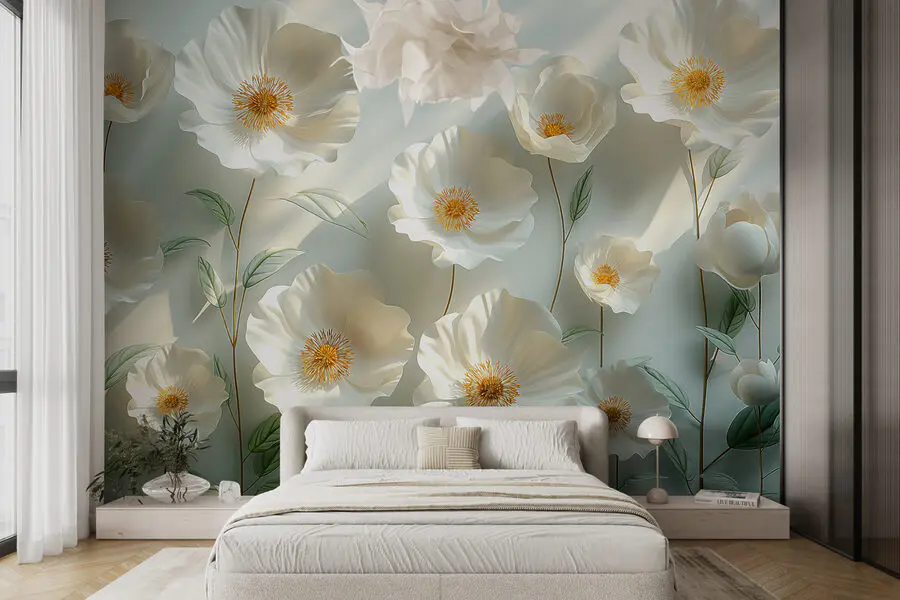 Transformați orice perete într-o escapadă în grădină cu această pictură murală uimitoare care prezintă un grup minunat de flori albe care răsar cu bucurie printre frunze verzi. Imaginați-vă că vă treziți în fiecare zi și simțiți că vă plimbați printr-o pajiște luminată de soare. Aceste flori adaugă un aer proaspăt și liniștitor, perfect pentru diminețile confortabile sau serile răcoroase. Fie că este vorba de o cameră de zi, un dormitor sau chiar un spațiu creativ, toți vor spune: “Wow, uită-te la astea!” În plus, cui nu-i plac florile care nu trebuie udate? Peretele tău îți va mulțumi în timp ce tu te bucuri de frumusețe!