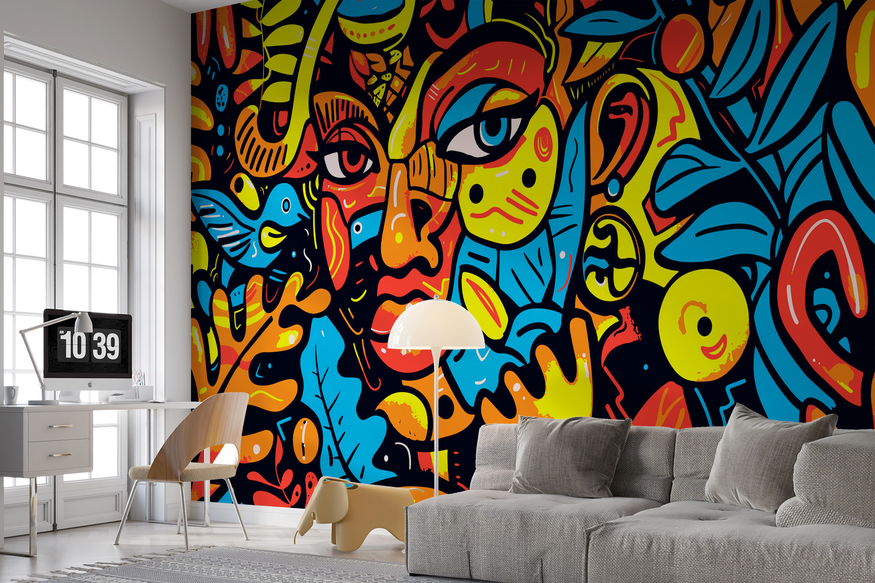 “Fototapet w01345” este cu adevărat o capodoperă. Imaginați-vă această explozie vibrantă de culoare împrăștiată pe unul dintre pereții dvs. – ar fi ca și cum ați intra în fiecare zi într-un carnaval de artă! Amestecul de roșu aprins, galben aprins și albastru rece creează o frenezie abstractă care este pur și simplu… hipnotizantă. Această pictură murală nu este doar o piesă de decor; este o sursă de conversație. Prietenii s-ar putea să vină și să se oprească, să se holbeze și, știi tu, poate chiar să înceapă să se întrebe care este povestea din spatele acelor ochi expresivi și forme capricioase. Pare viu, aproape ca și cum ar avea propriul secret pe care așteaptă să-l împărtășească. Perfectă pentru a da un plus de eleganță sufrageriei sau studioului tău. Nu este doar artă – este bucurie instantanee lipită pe perete!
