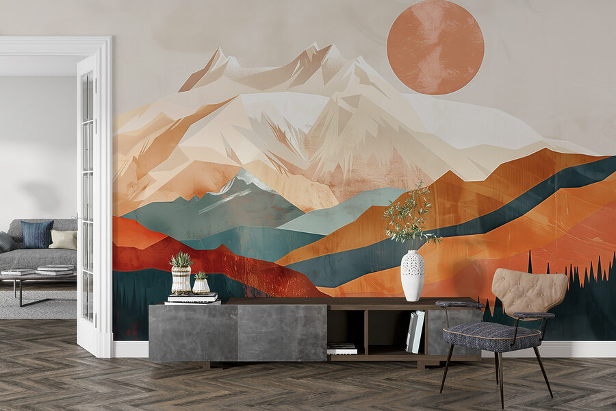 V-ați dorit vreodată să vă puteți trezi în fiecare zi cu o priveliște montană? Ei bine, “Fototapet w01358” te-a acoperit! Este ca și cum ai păși într-un vis abstract – vârfuri mari care par să atingă cerul, un soare cald plutind pe un cer cețos și senin… Doar privindu-l te poți simți ca într-o mini-vacanță. Perfectă pentru oricine iubește natura, dar își dorește o atmosferă contemporană, artistică. Imaginați-vă acest tablou în camera de zi sau chiar în biroul dvs. – aduce aerul liber în interior într-un mod atât de elegant și liniștitor. Perfect pentru a crea un spațiu inspirațional cu priveliște… fără toate călătoriile!