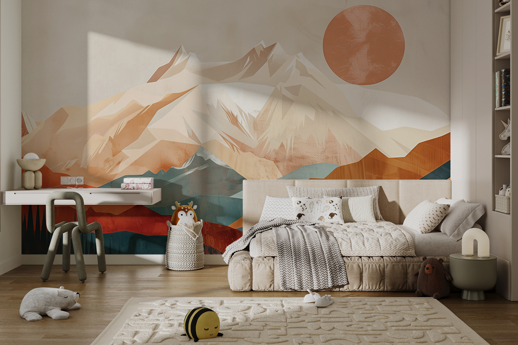 V-ați dorit vreodată să vă puteți trezi în fiecare zi cu o priveliște montană? Ei bine, “Fototapet w01358” te-a acoperit! Este ca și cum ai păși într-un vis abstract – vârfuri mari care par să atingă cerul, un soare cald plutind pe un cer cețos și senin… Doar privindu-l te poți simți ca într-o mini-vacanță. Perfectă pentru oricine iubește natura, dar își dorește o atmosferă contemporană, artistică. Imaginați-vă acest tablou în camera de zi sau chiar în biroul dvs. – aduce aerul liber în interior într-un mod atât de elegant și liniștitor. Perfect pentru a crea un spațiu inspirațional cu priveliște… fără toate călătoriile!