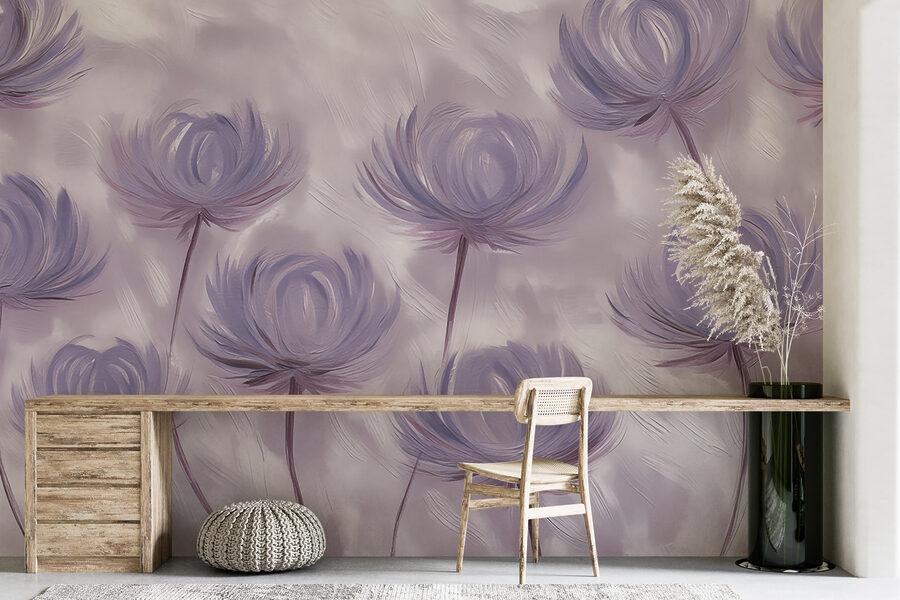 Priviți această uimitoare pictură murală, numită pe bună dreptate “Fototapet w01375”. Este ca un vis cu ochii deschiși care prinde viață, nu-i așa? Perfect pentru oricine iubește decorul unic cu un strop de natură și o atingere de magie a acuarelei. Imaginați-vă acest lucru: flori moi, capricioase, în nuanțe de violet delicat, care se leagănă aproape ca și cum și-ar șopti secrete una alteia.