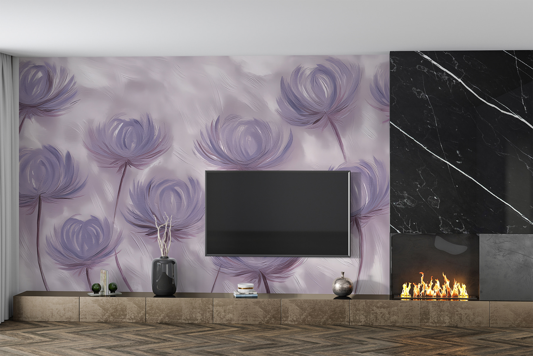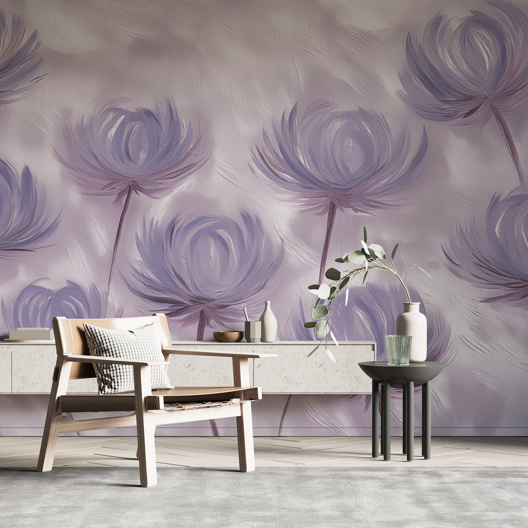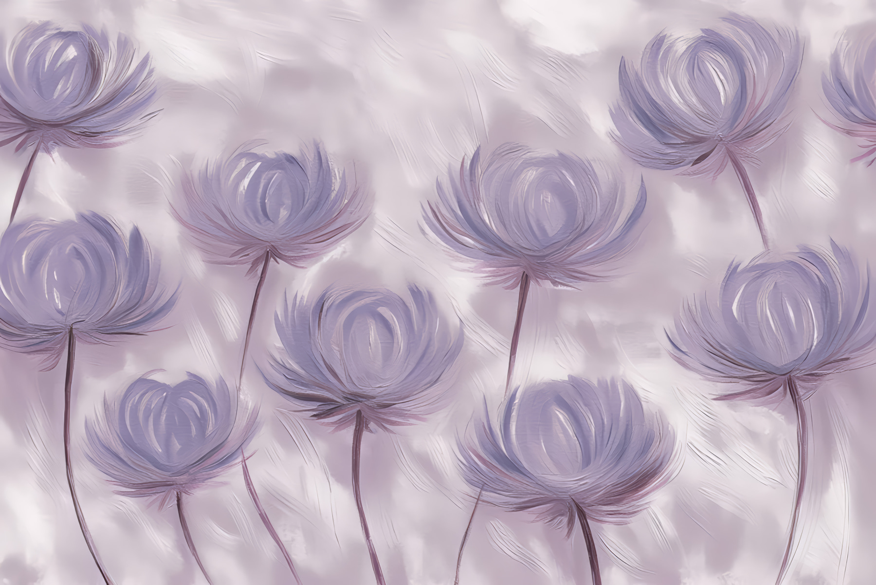 Priviți această uimitoare pictură murală, numită pe bună dreptate “Fototapet w01375”. Este ca un vis cu ochii deschiși care prinde viață, nu-i așa? Perfect pentru oricine iubește decorul unic cu un strop de natură și o atingere de magie a acuarelei. Imaginați-vă acest lucru: flori moi, capricioase, în nuanțe de violet delicat, care se leagănă aproape ca și cum și-ar șopti secrete una alteia.