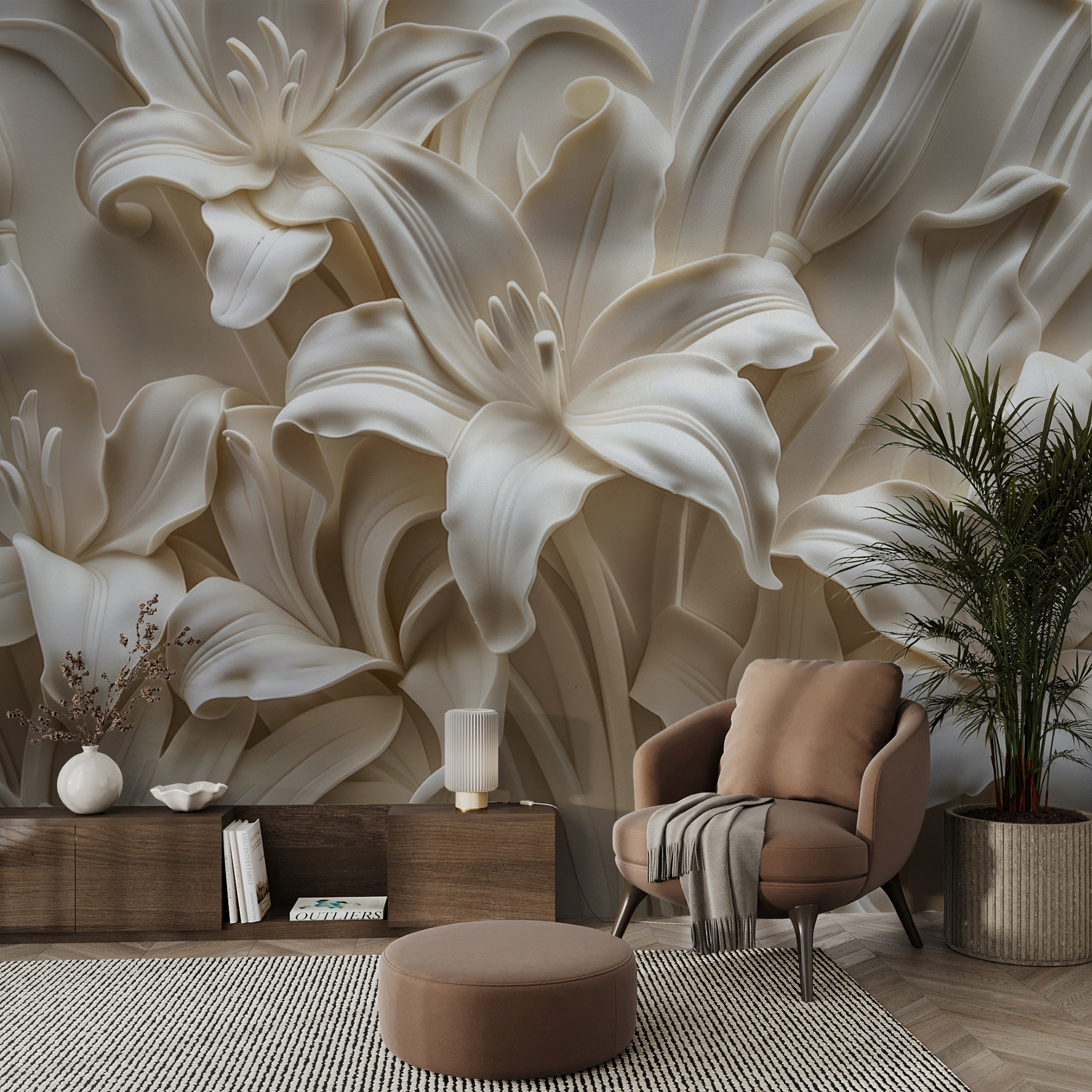 Imaginați-vă că intrați într-o cameră și sunteți întâmpinați de o explozie de crini eleganți, cremoși, care par că ies ușor din perete – vorbiți despre un factor wow! “Fototapet w01433” aduce o notă de sofisticare șic cu designul său floral 3D. Acesta nu este doar un alt print de perete; adaugă textură, profunzime și un vibe senin oricărui spațiu. Perfect pentru cineva care s-a săturat de pereții plați și plictisitori și tânjește după un plus de farmec.