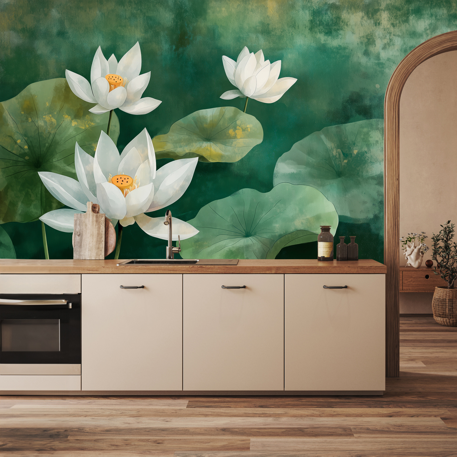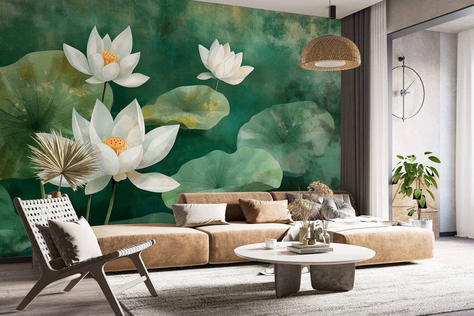 Transformați orice perete într-o evadare de vis cu această pictură murală fermecătoare de flori albe și frunze luxuriante. Este ca și cum ai aduce o grădină senină chiar în spațiul tău, fără murdărie și insecte. Imaginați-vă acest lucru: trezindu-vă în fiecare dimineață înconjurat de frumusețea naturii, gata să începeți ziua. Vibe-ul moale de acuarelă adaugă o notă liniștitoare, perfectă pentru un colț confortabil sau un spațiu de lucru inspirat. Prietenii ar putea crede chiar că aveți o grădină secretă ascunsă. Fie că sorbiți cafea sau vă relaxați după o zi lungă, această pictură murală învăluie camerele într-o îmbrățișare liniștitoare. Doar imaginați-vă complimentele!