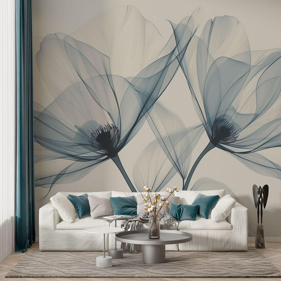 Ați visat vreodată să aduceți eleganță în camera dvs. de zi doar cu o privire? Acest “Fototapet w01483” ar putea fi biletul dumneavoastră – esența naturii învelită în nuanțe uimitor de moi și detalii artistice. Este ca și cum ai avea flori delicate trecând prin spațiul tău – fără polen! Imaginați-vă aceste petale uriașe dansând în liniște sub lumina soarelui… Amestecul de alb și albastru fantomatic șoptește liniște.