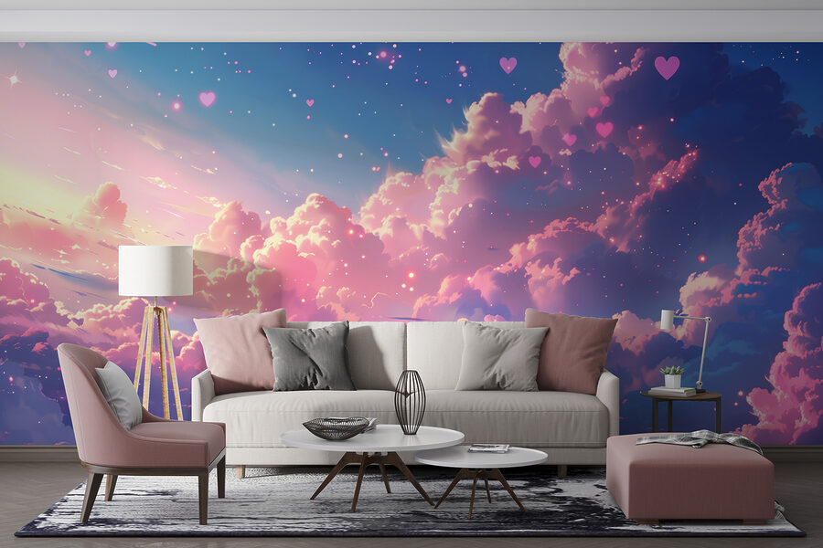 Imaginați-vă că vă uitați în sus și vedeți un cer plin de nori roz, de vis, care par desprinși direct dintr-o poveste – această pictură murală, “Fototapet w01487”, este acea scenă magică captată pentru peretele dvs. Este ca și cum ai aduce o bucată de rai cu vată de zahăr în casa ta. Perfect pentru cei care iubesc un strop de fantezie și o atingere de seninătate în timpul zilei. Albastrul și rozul moale se contopesc, făcând ca orice cameră să se simtă confortabilă, dar răcoritoare. Copiii vor adora atingerile în formă de inimă și s-ar putea să stârnească discuții la următoarea voastră întâlnire. Nu este doar o pictură murală; este o bucățică de fericire chiar pe peretele tău.