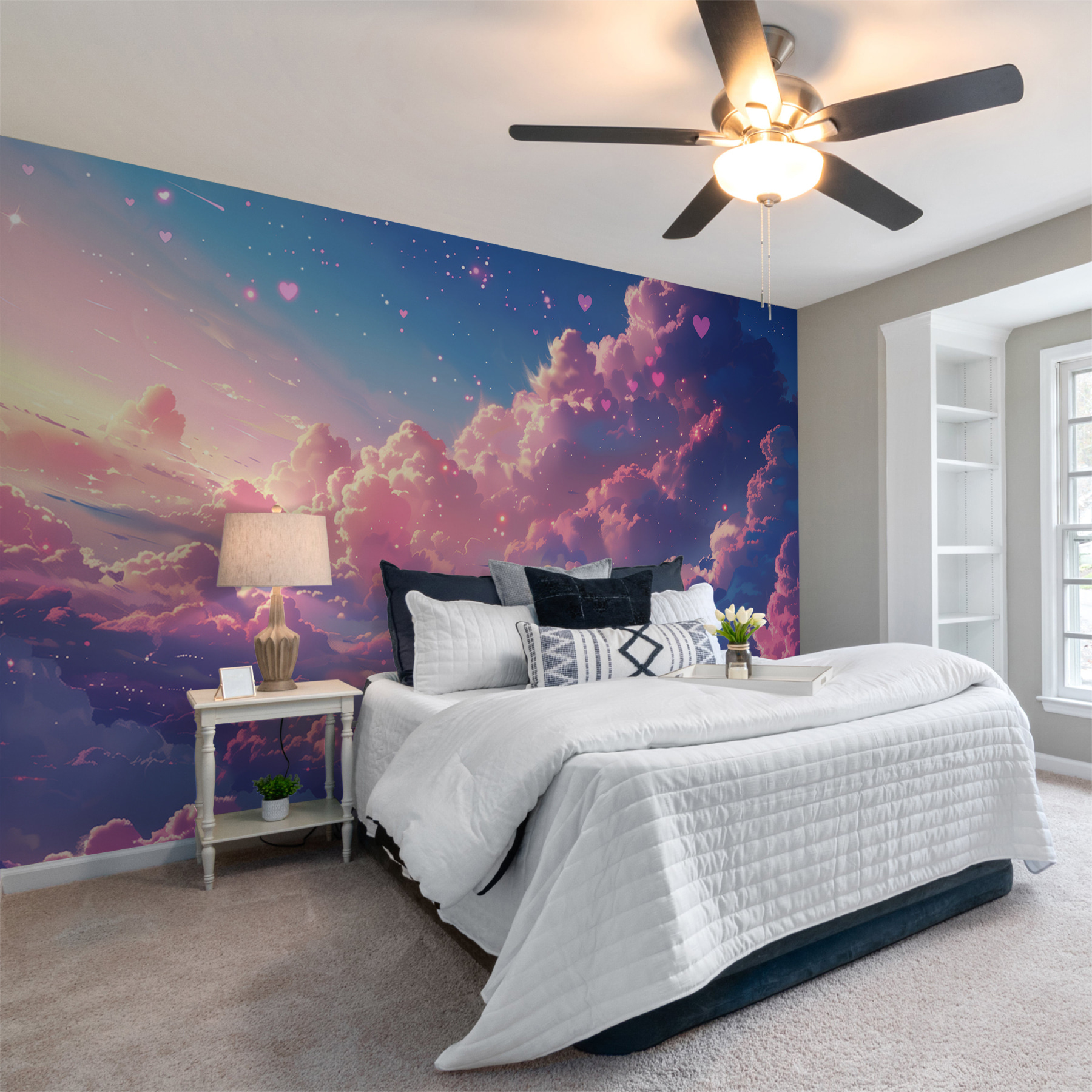 Imaginați-vă că vă uitați în sus și vedeți un cer plin de nori roz, de vis, care par desprinși direct dintr-o poveste – această pictură murală, “Fototapet w01487”, este acea scenă magică captată pentru peretele dvs. Este ca și cum ai aduce o bucată de rai cu vată de zahăr în casa ta. Perfect pentru cei care iubesc un strop de fantezie și o atingere de seninătate în timpul zilei. Albastrul și rozul moale se contopesc, făcând ca orice cameră să se simtă confortabilă, dar răcoritoare. Copiii vor adora atingerile în formă de inimă și s-ar putea să stârnească discuții la următoarea voastră întâlnire. Nu este doar o pictură murală; este o bucățică de fericire chiar pe peretele tău.