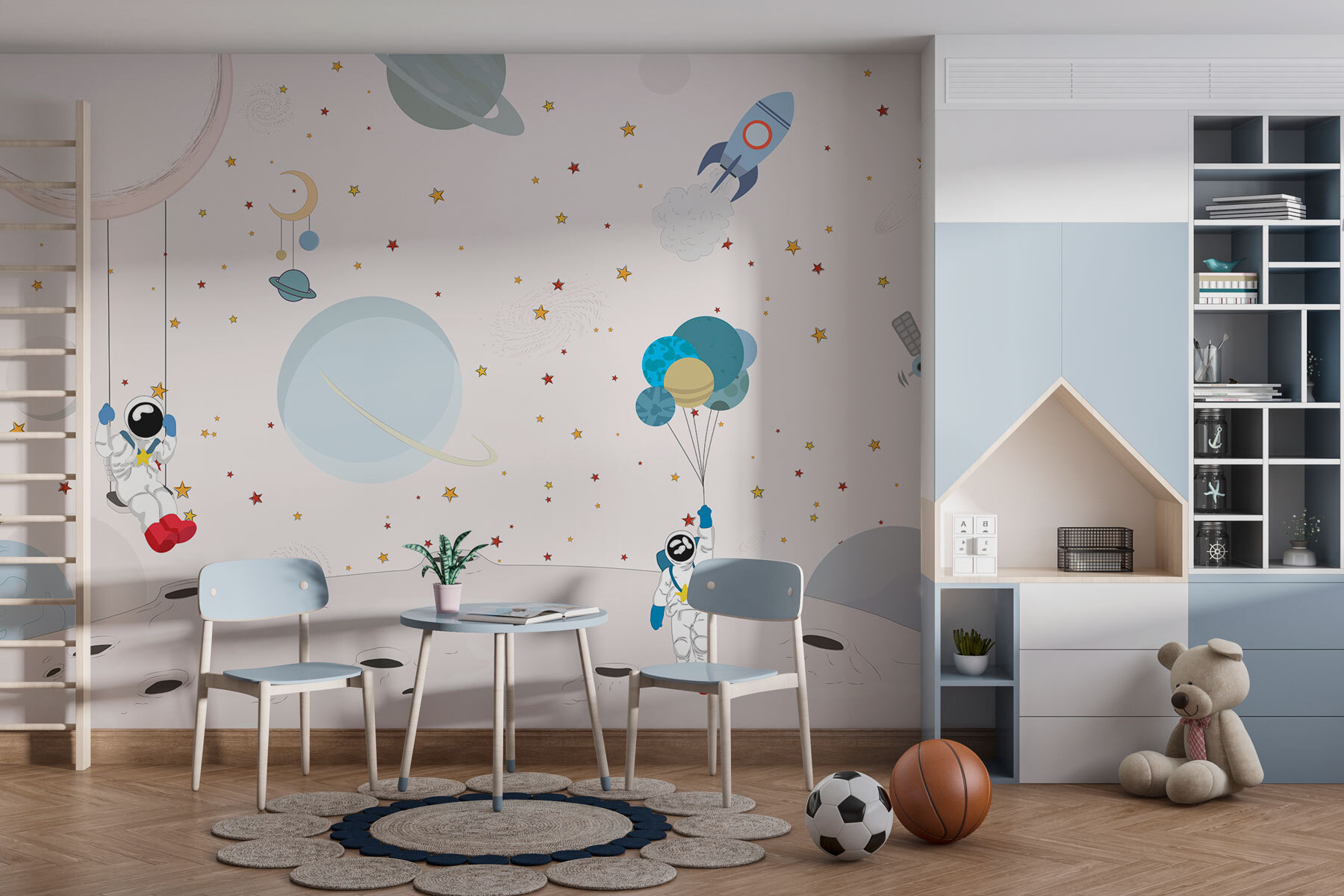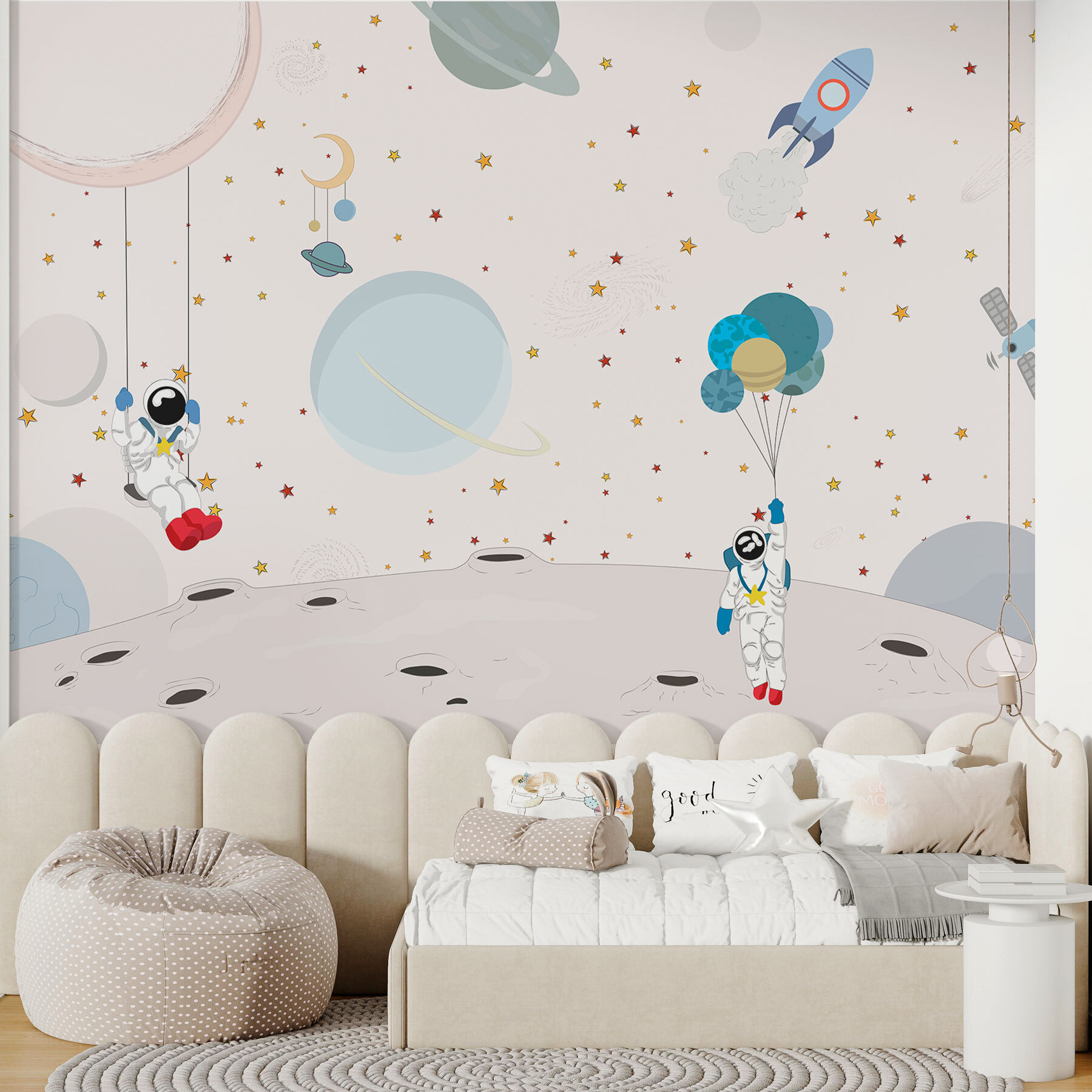 Visați un mic vis cu “Fototapet w01489”! V-ați gândit vreodată să aveți o galaxie în sufragerie? Ei bine, iată șansa ta. Această pictură murală este un amestec fantezist de stele, planete și micii noștri astronauți adorabili care se distrează de minune pe Lună. Perfect pentru toți cei care au mereu capul în nori – sau în stele! Imaginați-vă că vă relaxați sub un cer nocturn de vis în timp ce sorbiți ceai sau vă citiți cartea preferată. Este ca și cum ai invita o bucățică mică din cosmos chiar în spațiul tău. Magie pură, nu-i așa? 🌌✨
