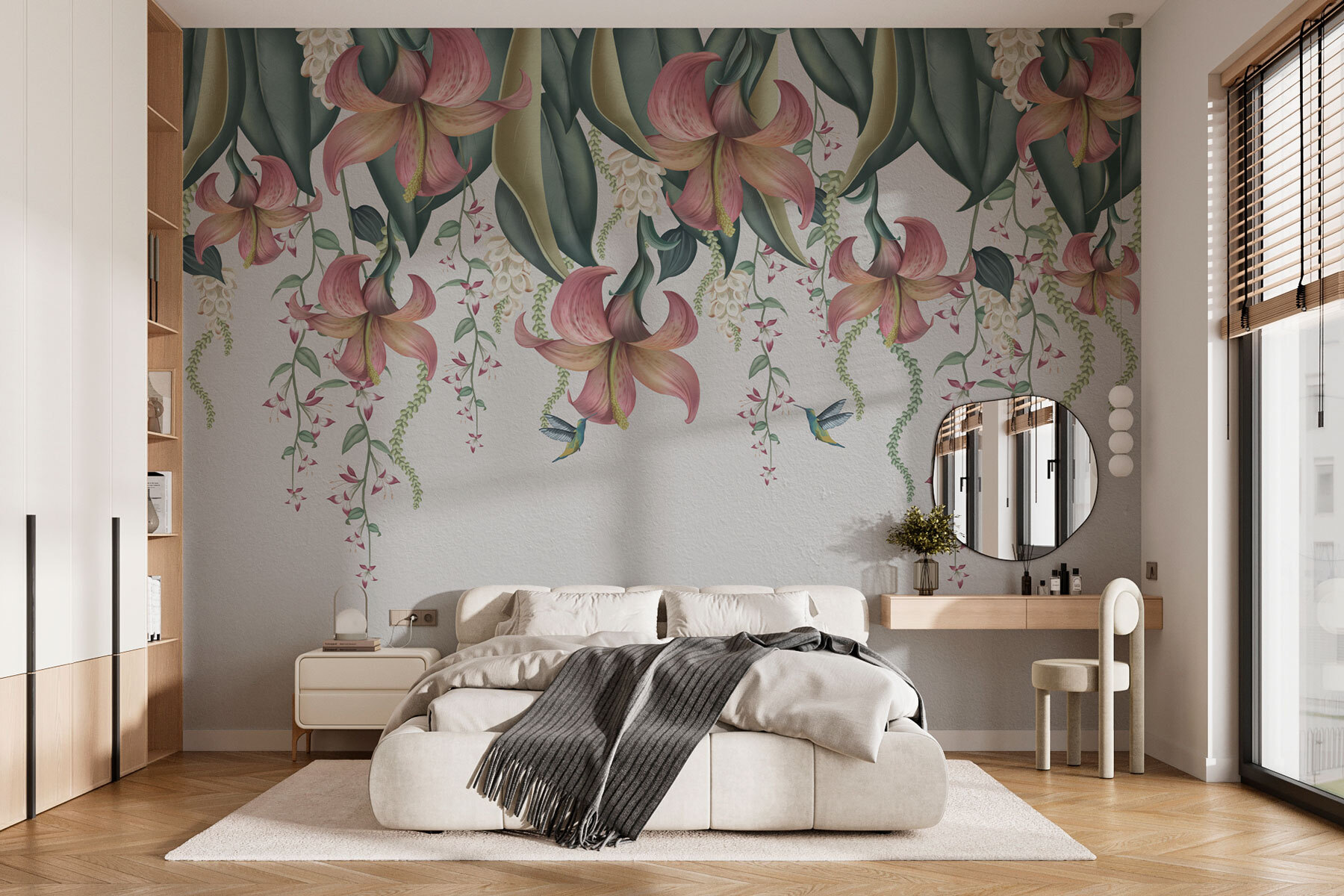 Transformați orice spațiu cu pictura murală “Cascada elegantă de artă florală”, în care un aranjament luxuriant de flori dansează pe perete. Imaginați-vă că vă treziți cu flori vibrante și liane delicate, invitând un sentiment de calm și natură în casa dumneavoastră. Imaginați-vă seri confortabile petrecute sub acest baldachin floral, cu prietenii stând de vorbă și sorbind ceai, sau poate doar cu dvs. absorbind frumusețea cu o carte bună. Culorile vii și detaliile fermecătoare fac să fie greu să nu zâmbești. Este ca și cum ai aduce o grădină secretă în interior – cine nu și-ar dori asta? Perfectă pentru camerele de zi sau, de fapt, oriunde doriți un strop din magia naturii!